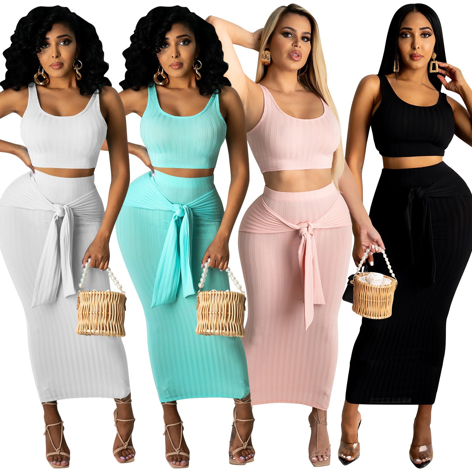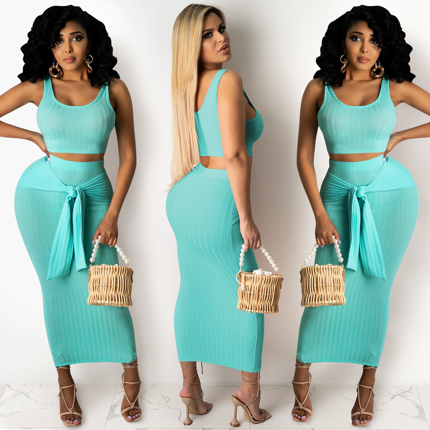 • Load image into Gallery viewer, Tank top hip dress two piece set AY2179