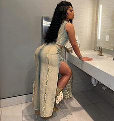 • Load image into Gallery viewer, Trend denim skirt two-piece set AY3422
