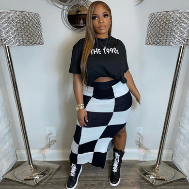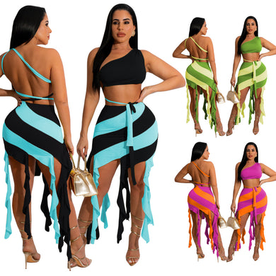 Striped open navel tight sleeveless vest skirt two-piece set AY2896
