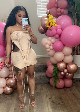 Sling Jumpsuit with Fur Bottom Dress Set with Chest Pads AY2700