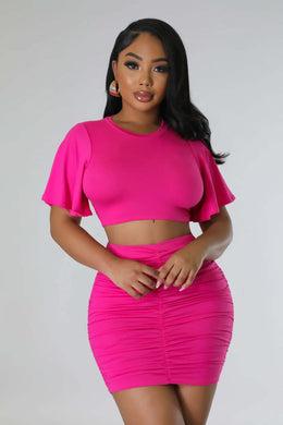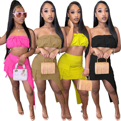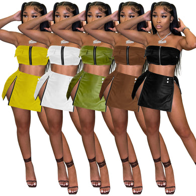 Solid PU Leather Sexy Two Piece Skirt Set AY2706