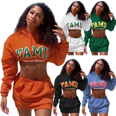 Trendy hip skirt and hooded sweater two-piece suit(AY1378)