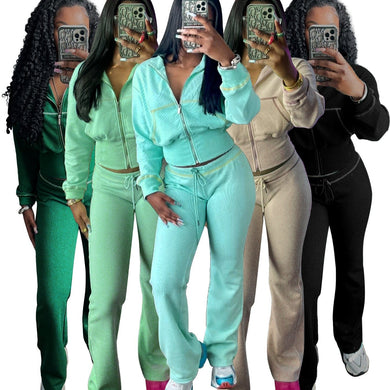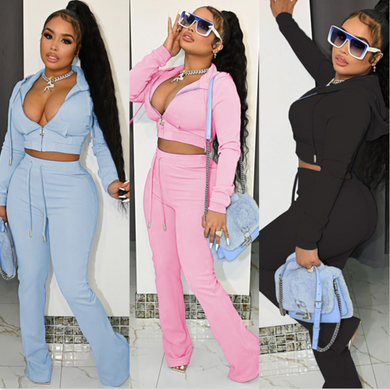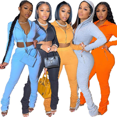 Fashion hooded long sleeved stacked pants two-piece set AY3626