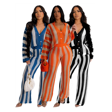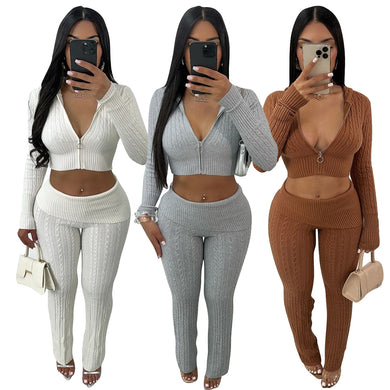 Fashion solid color knitted long sleeved two-piece set AY3605