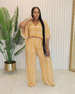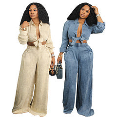 Casual Web Loose Stitching Denim Wide-Leg Pants Set