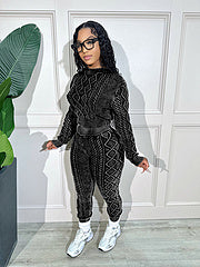 Diamond Fried Dough Twists pullover sweater set AY3298