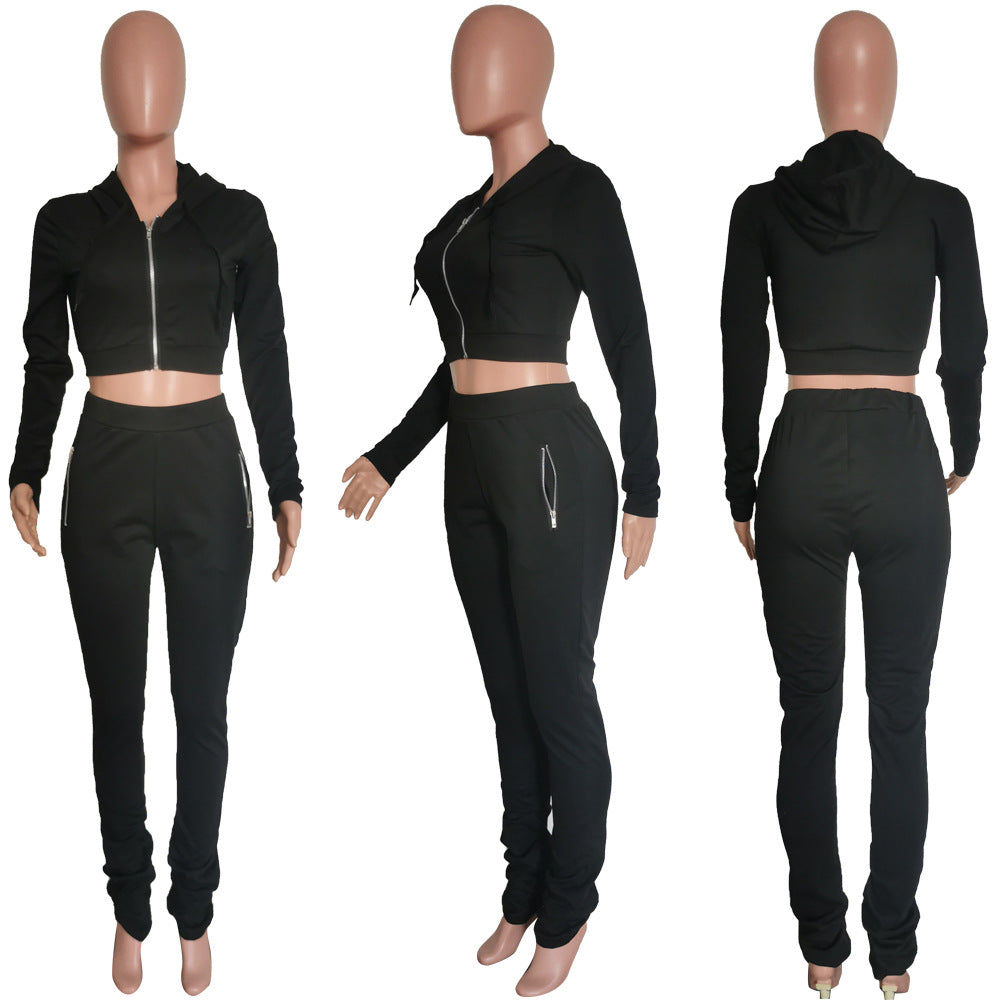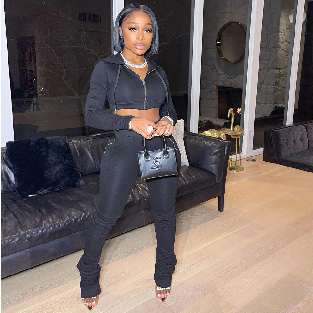 Fashion hooded long sleeved stacked pants two-piece set AY3626