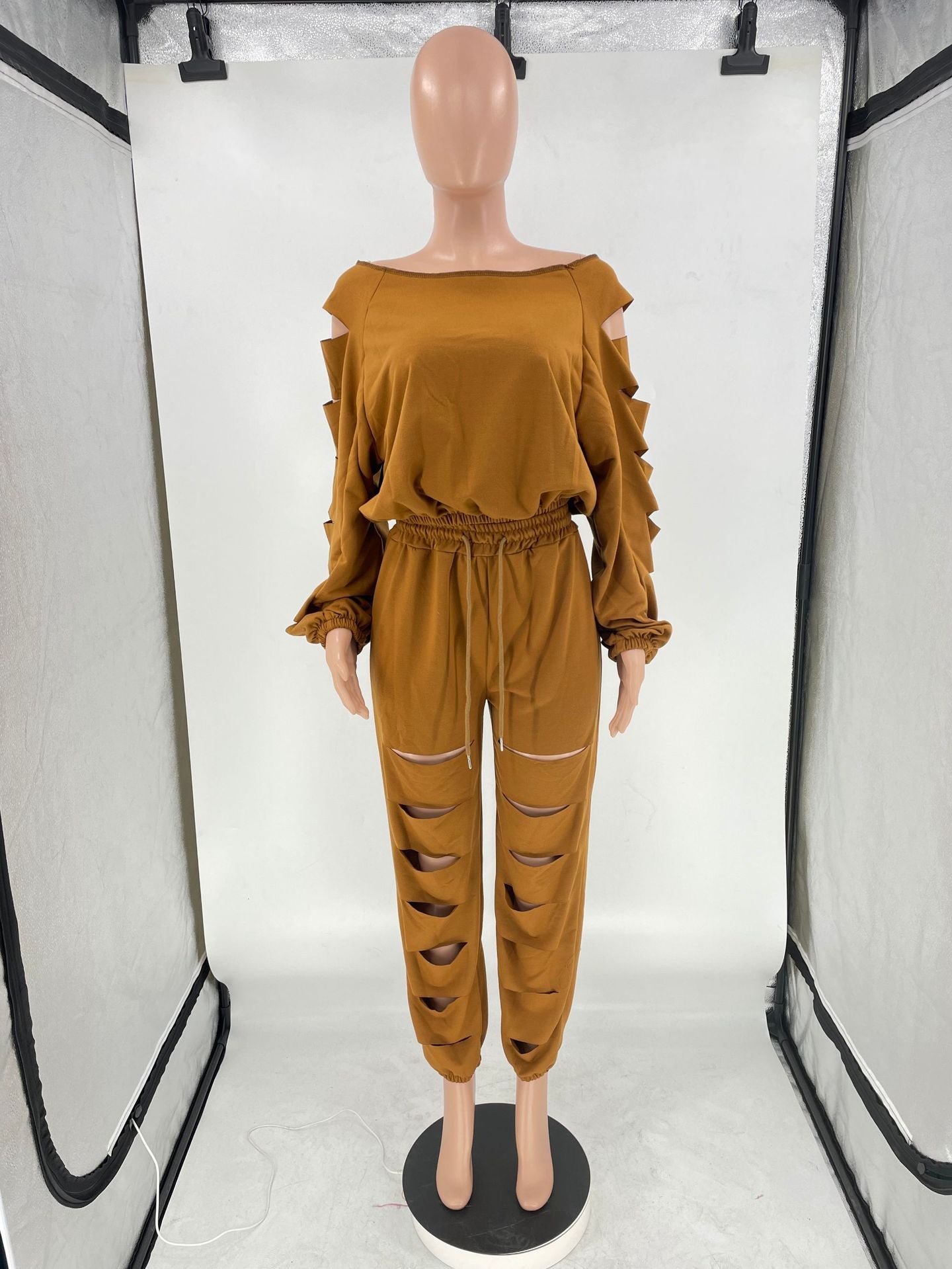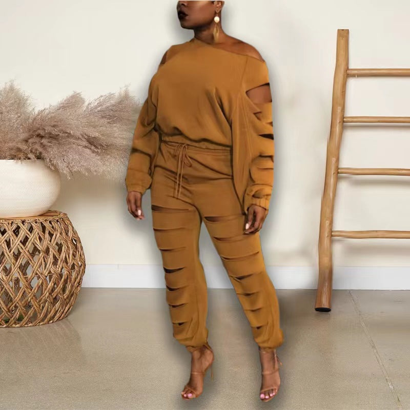 Hollow diagonal shoulder two-piece set(AY2456)
