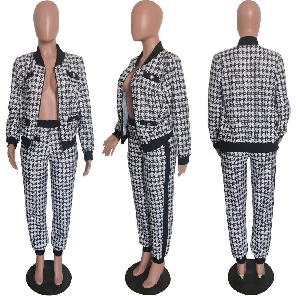 Print Button Jacket Pants Set(AY2354)
