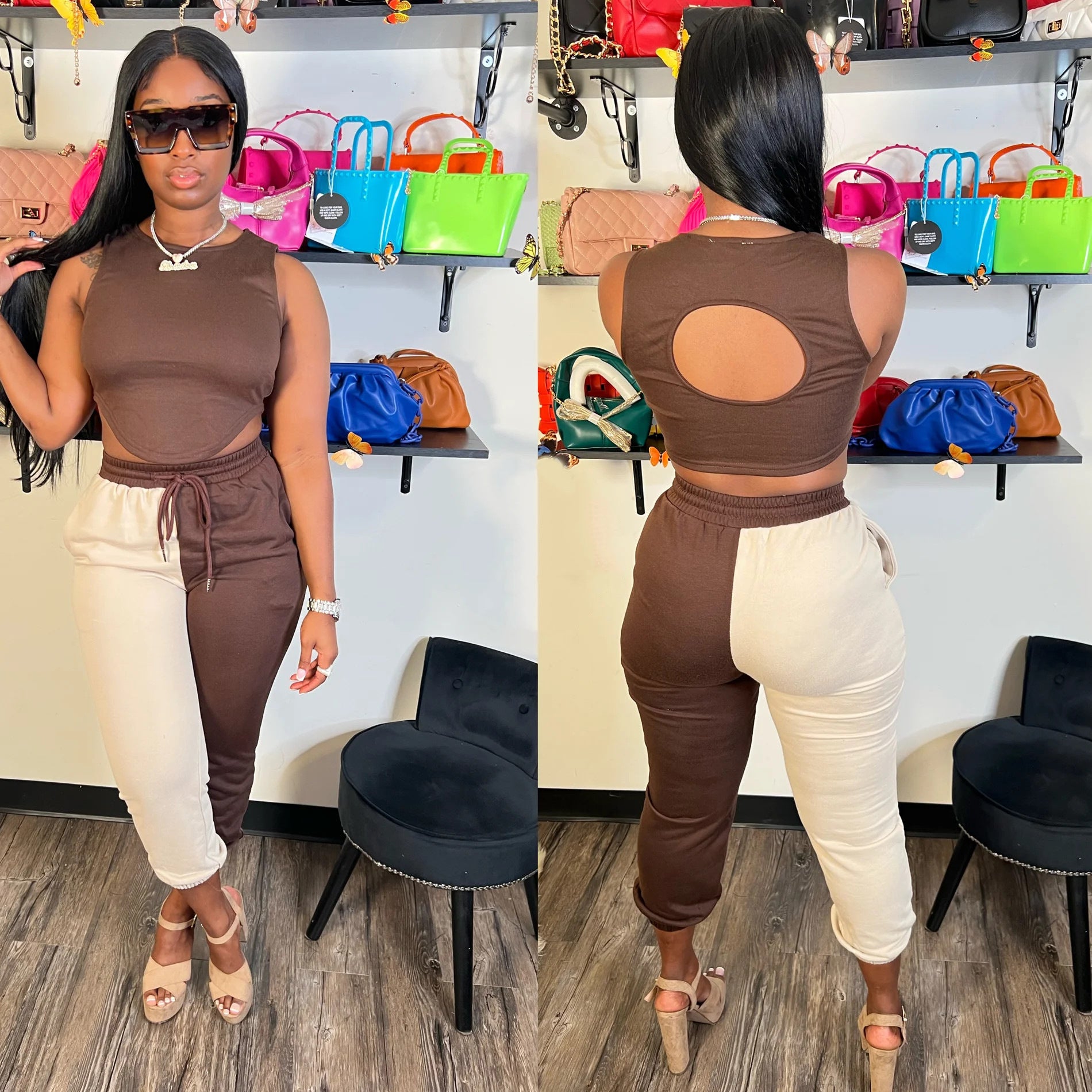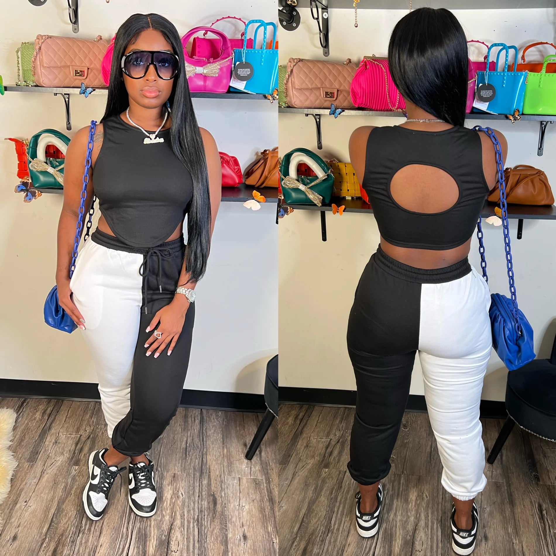 Open-back knitted panel suit AY2636