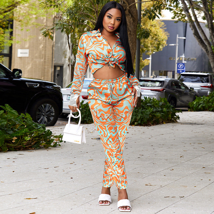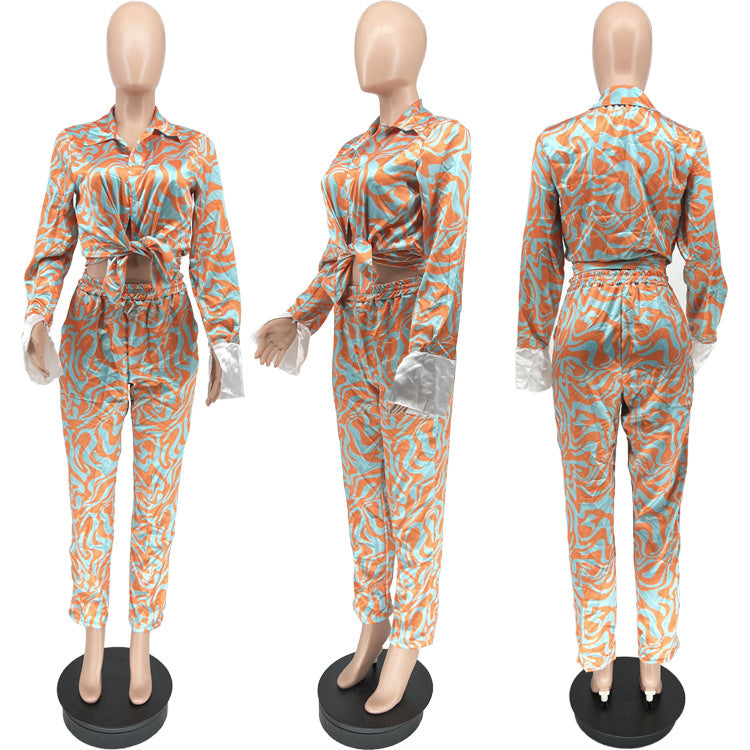Printed Long Sleeve Shirt Trousers Set(AY2306)