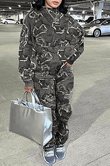 • Load image into Gallery viewer, printed pocket long sleeved sweater 2-piece set AY3253