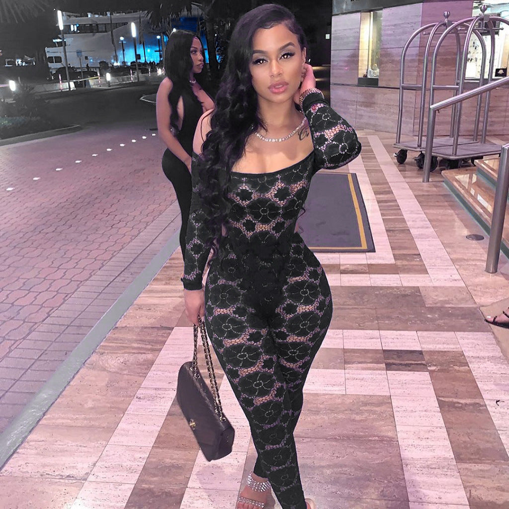 Sexy lace one-shoulder jumpsuit two-piece set(AY1768)