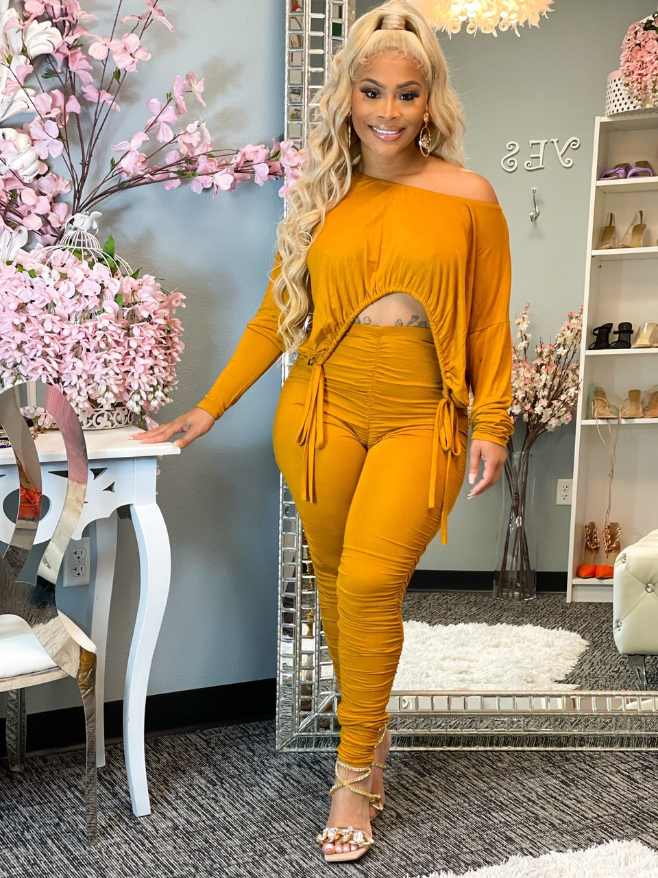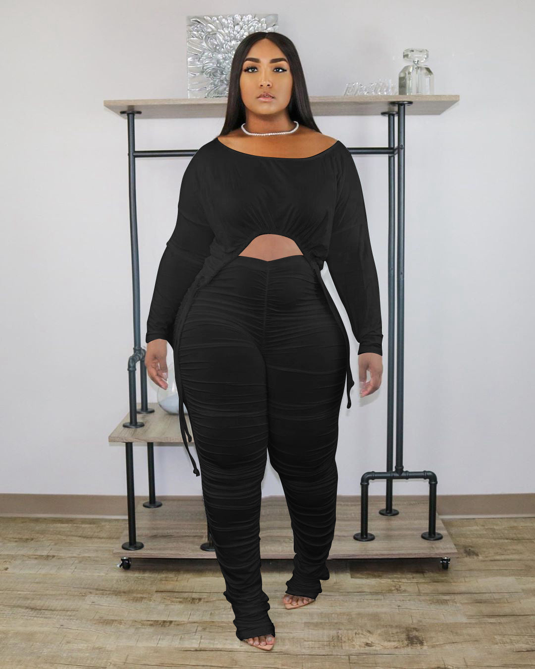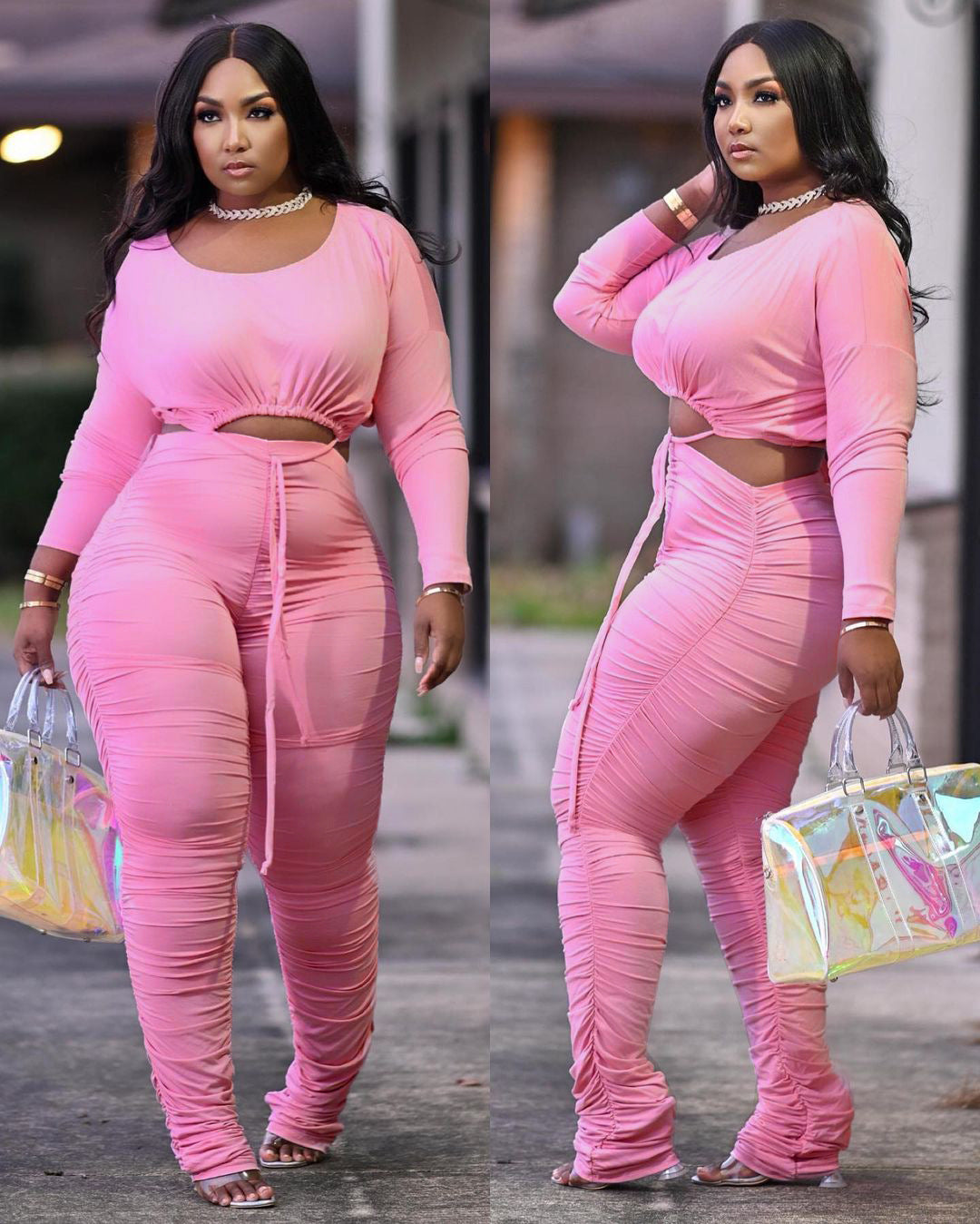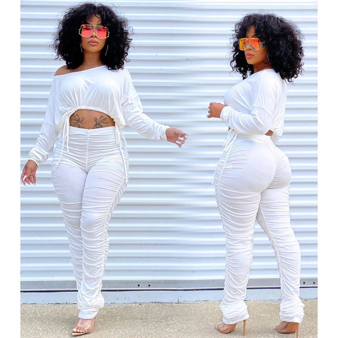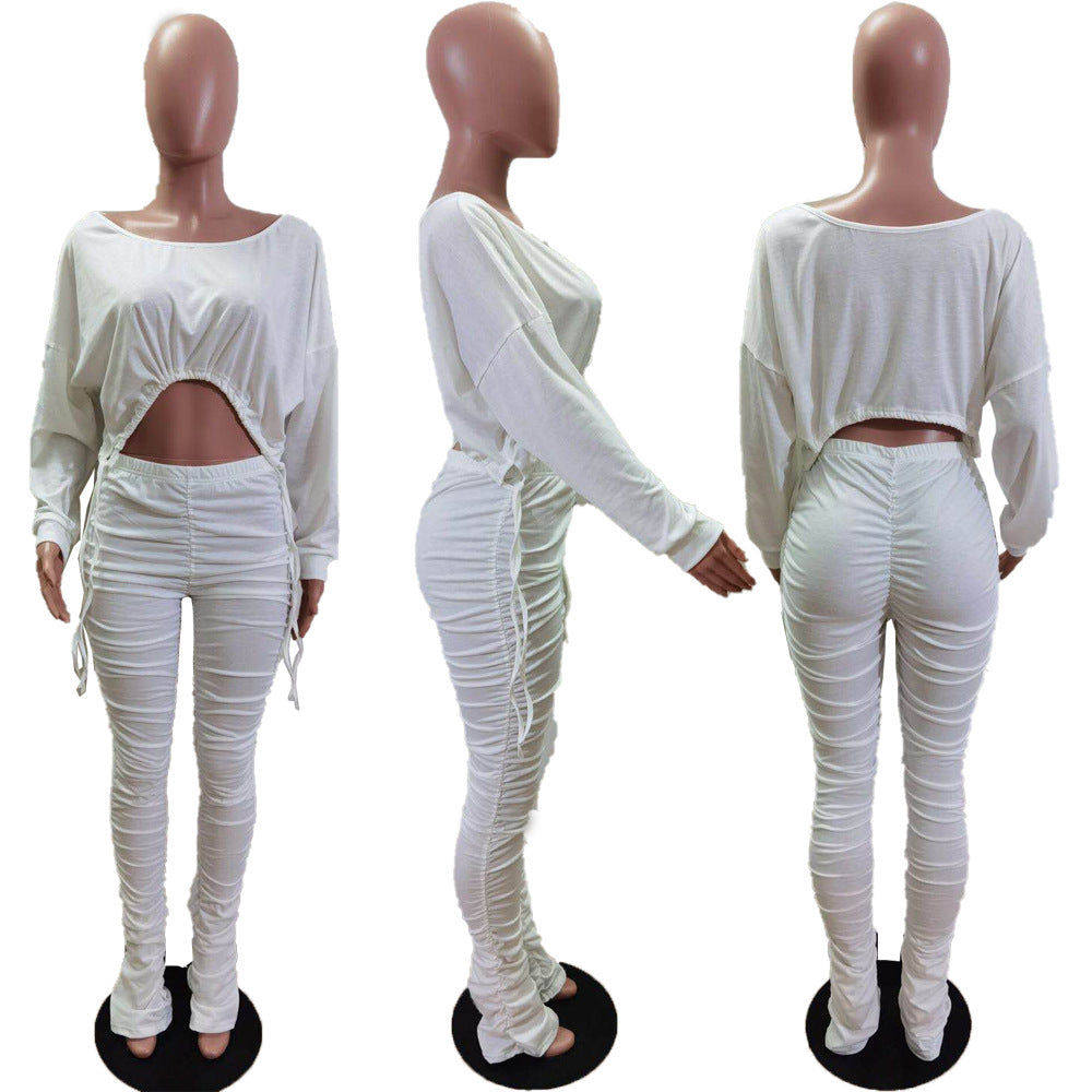 Slim fitting pleated drawstring pants set AY3154
