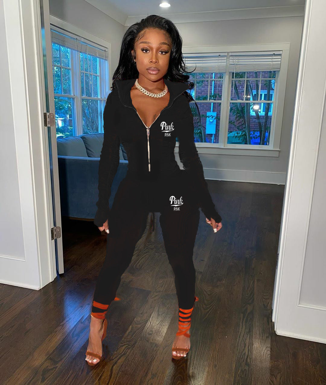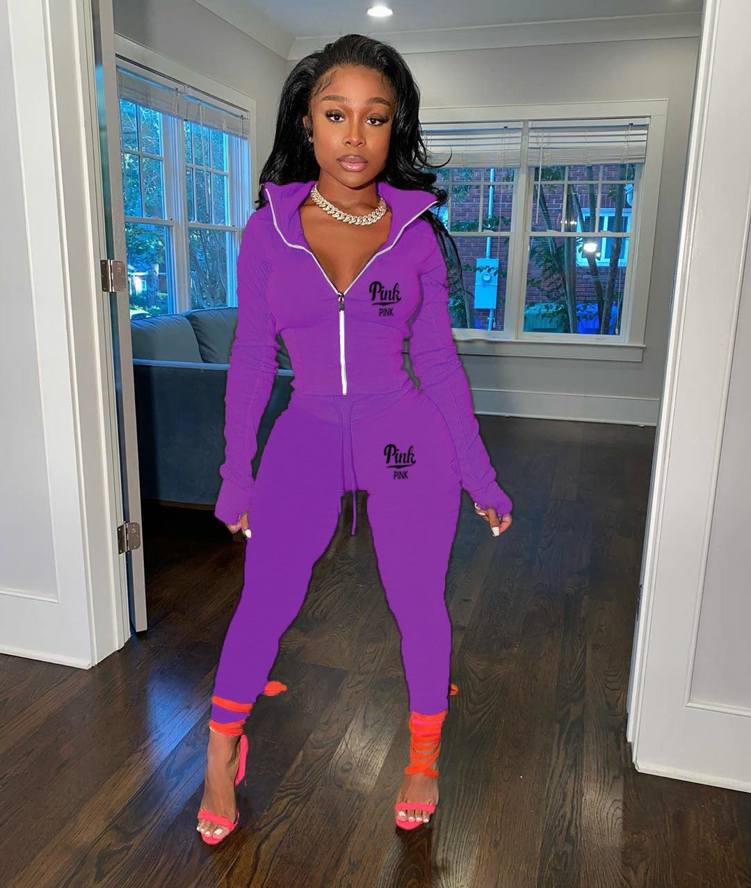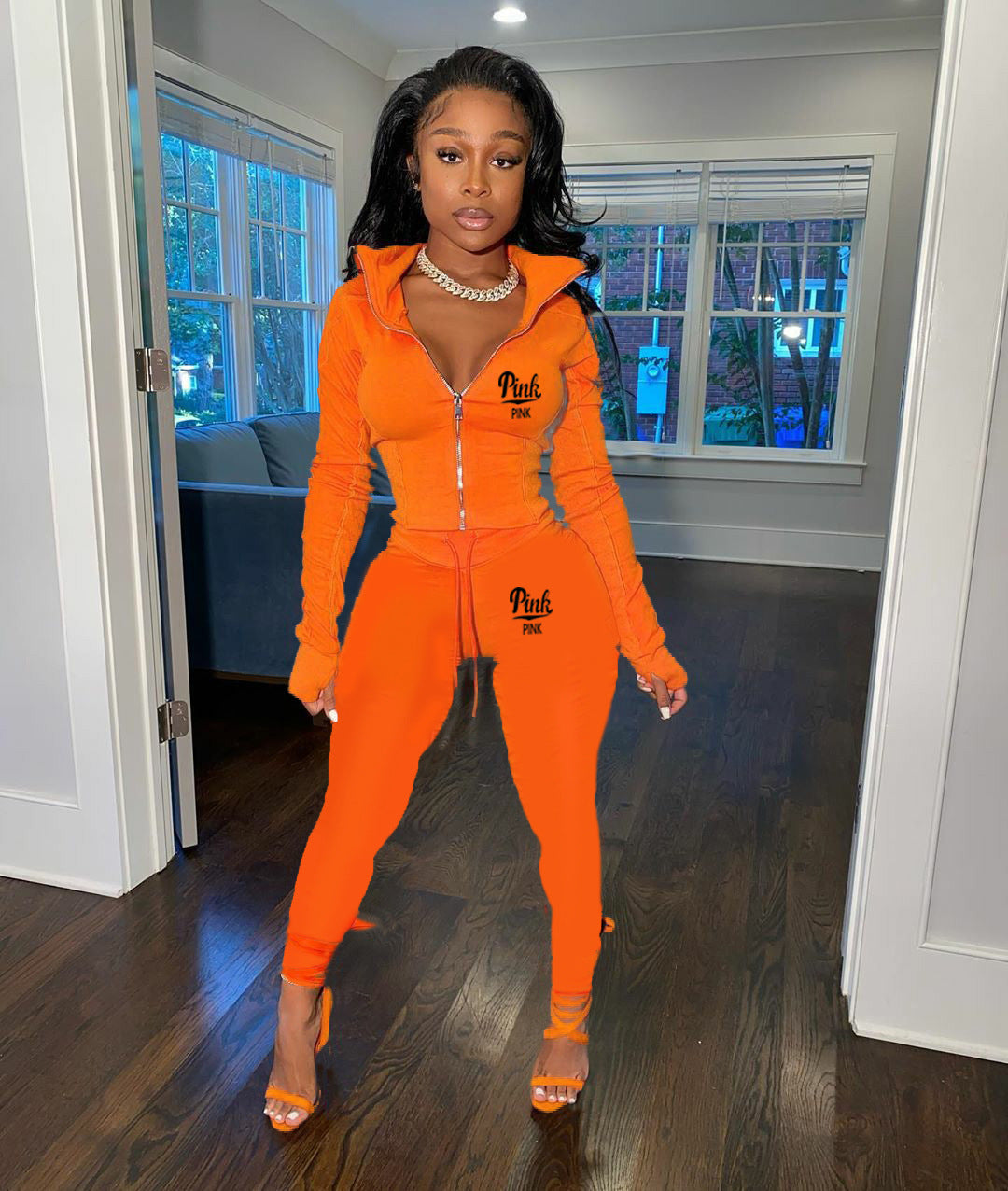 Solid Color Letter Print Two Piece Set(AY2386)