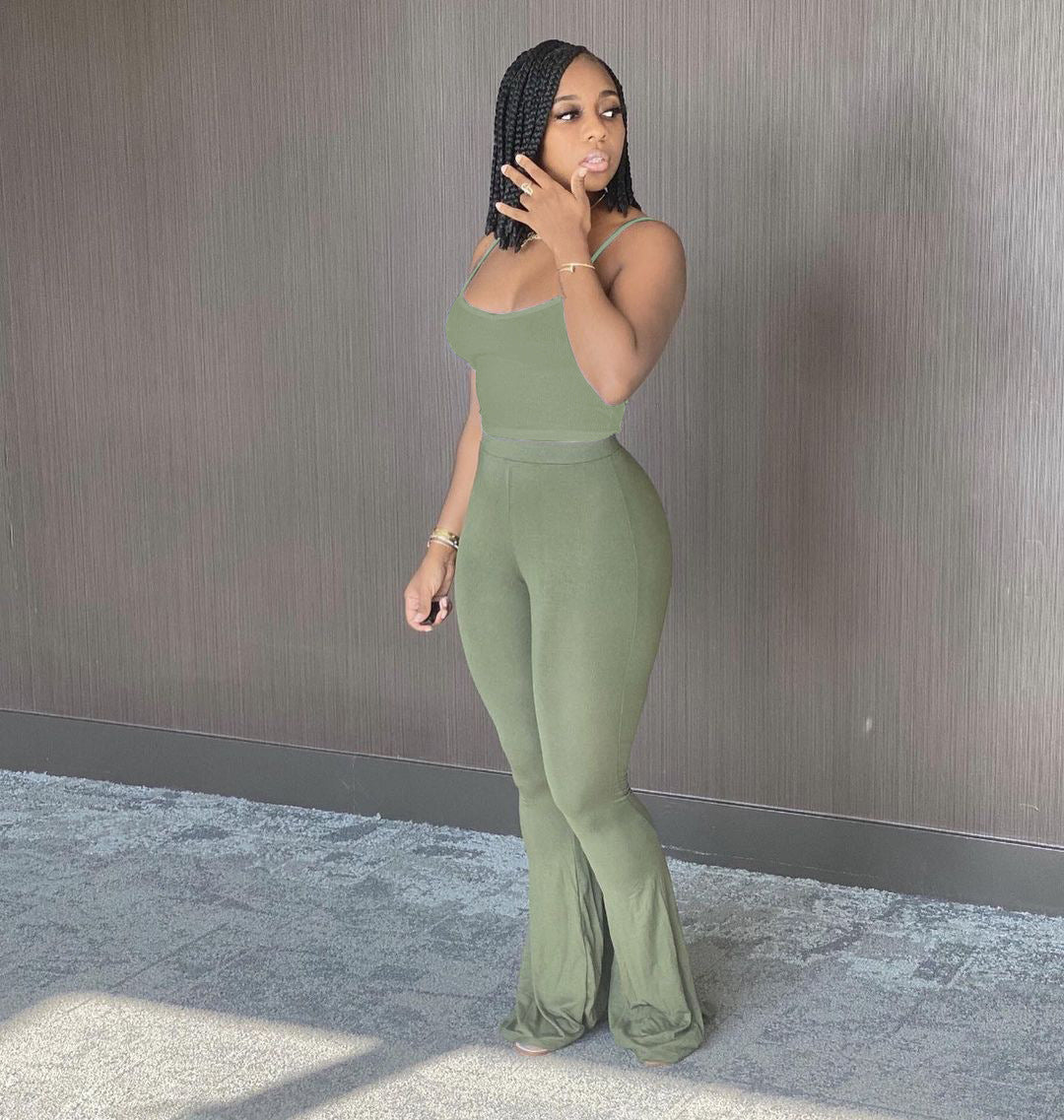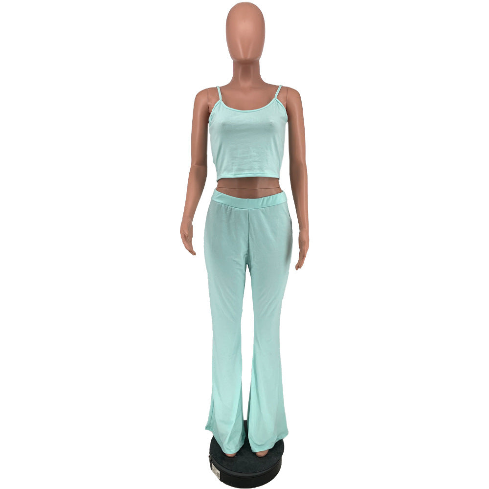 • Load image into Gallery viewer, solid color suspender flare pants casual set AY2769