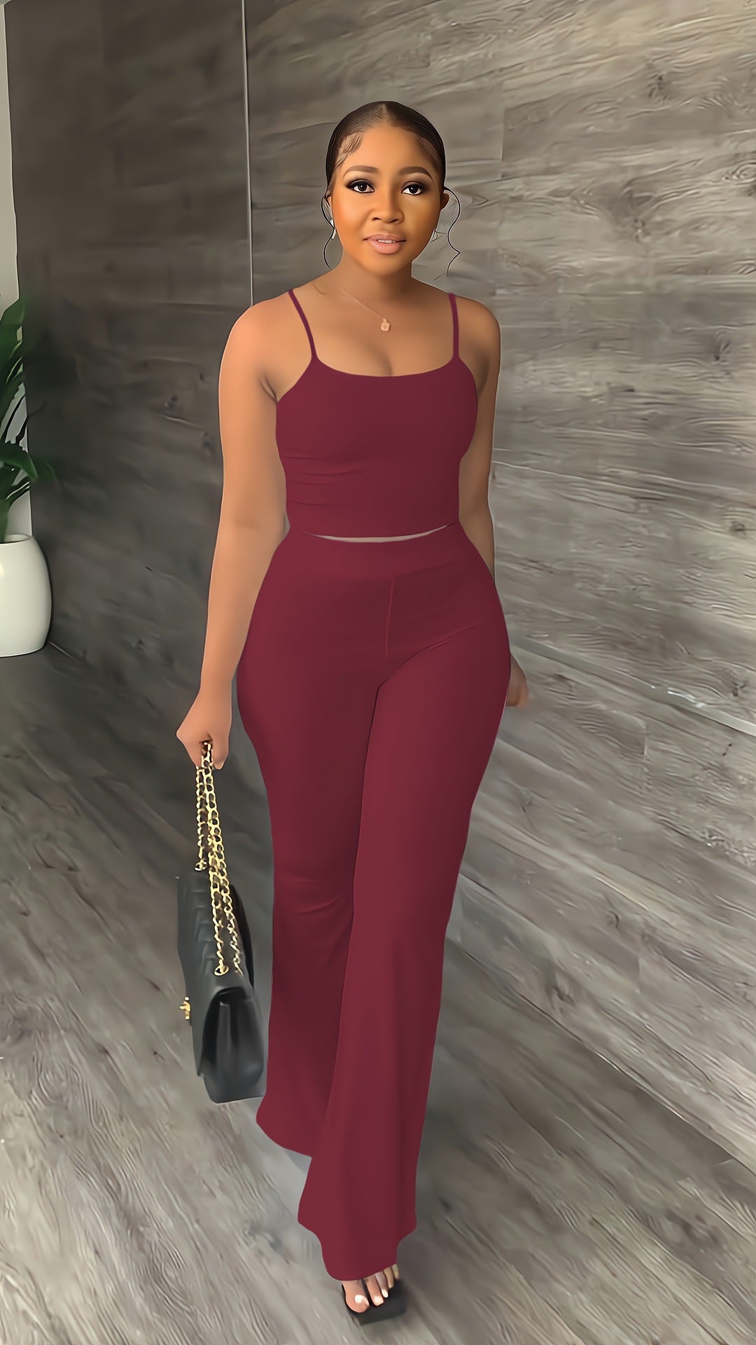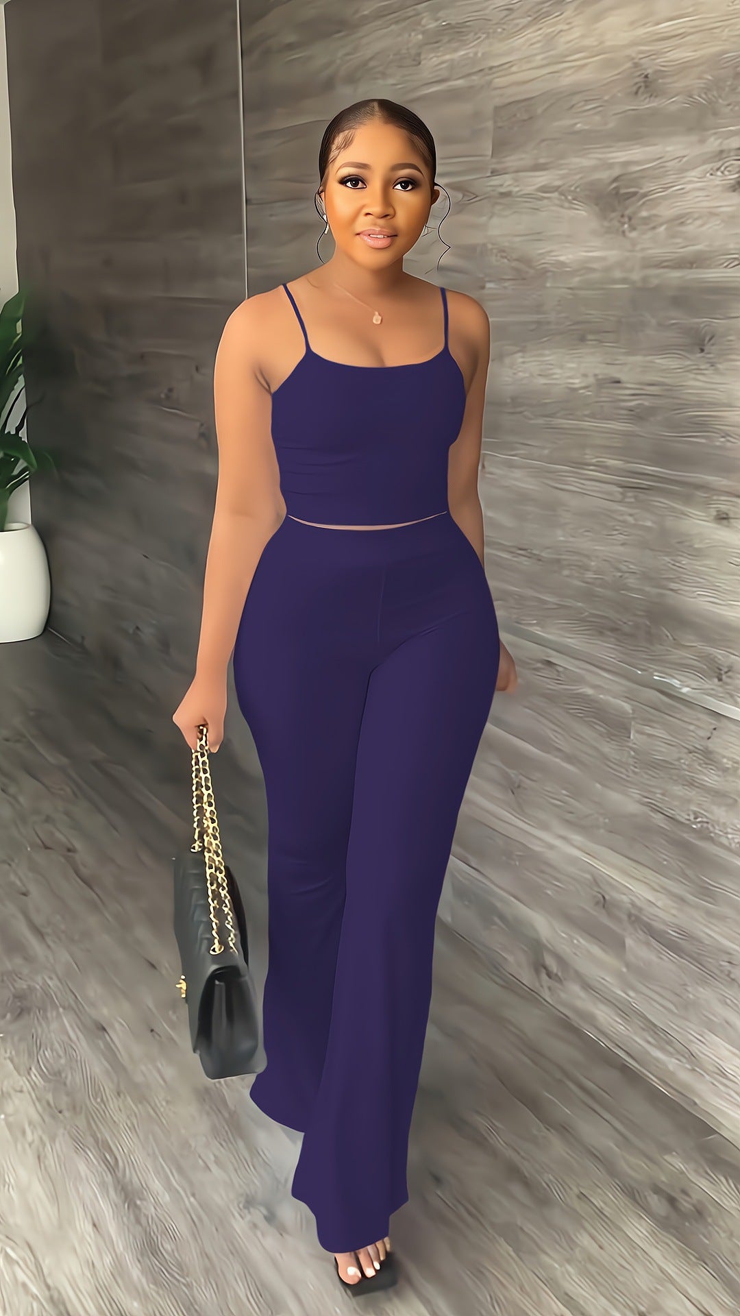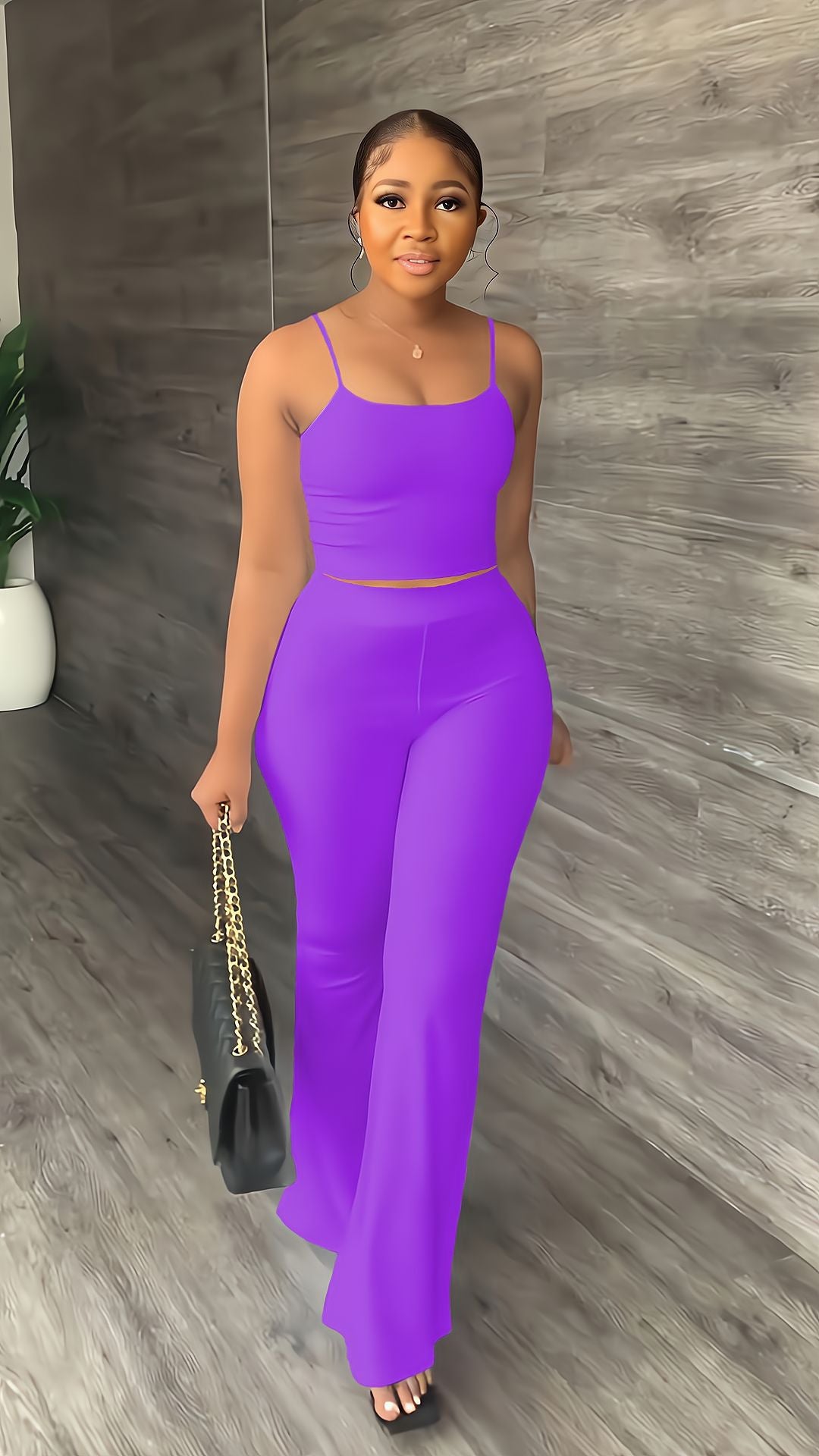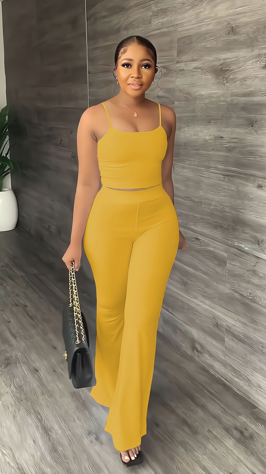 • Load image into Gallery viewer, Solid color suspender flared pants fashion set AY2881