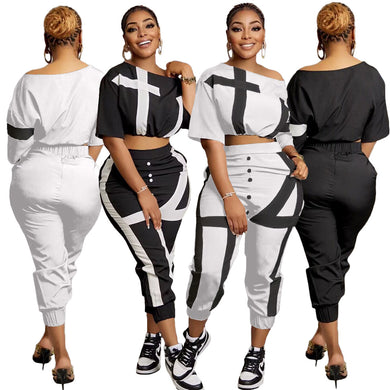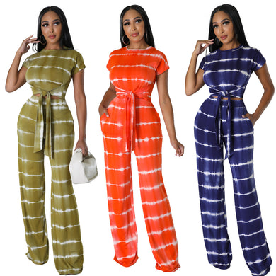 Fashion tassel long pants short sleeved two-piece set AY3027