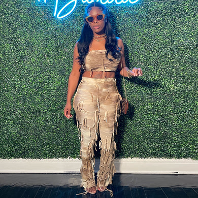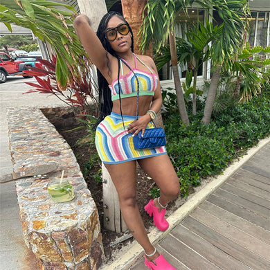 Sexy gradient beach tassel knitted pants casual set AY2859