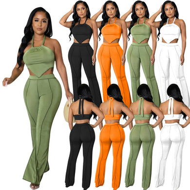 Solid color pit stripe sleeveless micro flared pants two-piece set AY2848