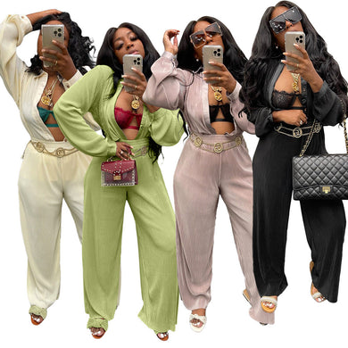 Stylish solid head high-waisted pants two-piece suit AY2586