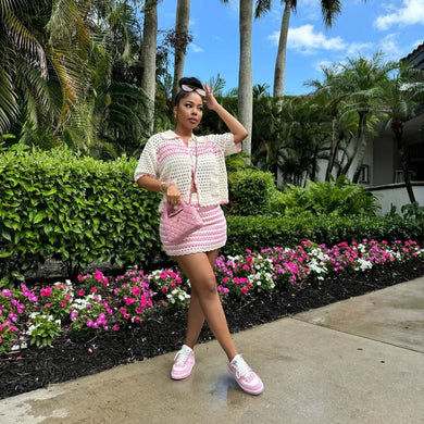 Casual loose fit knitted small suit beach skirt suit AY3660