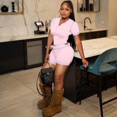 Fashion lapel short sleeved set AY3521