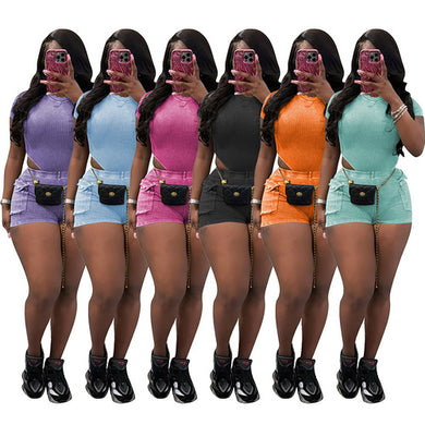 Sexy solid color shorts two-piece set AY3650