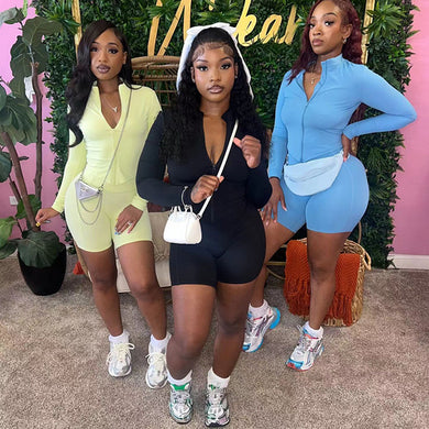Sexy tight long-sleeved shorts two-piece suit