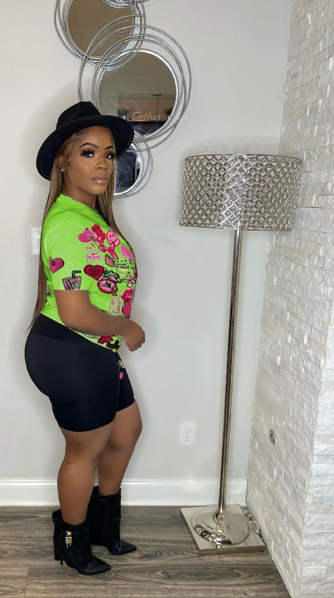 Fashion printing T-shirt shorts two-piece set AY2686