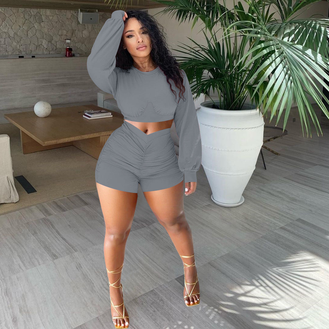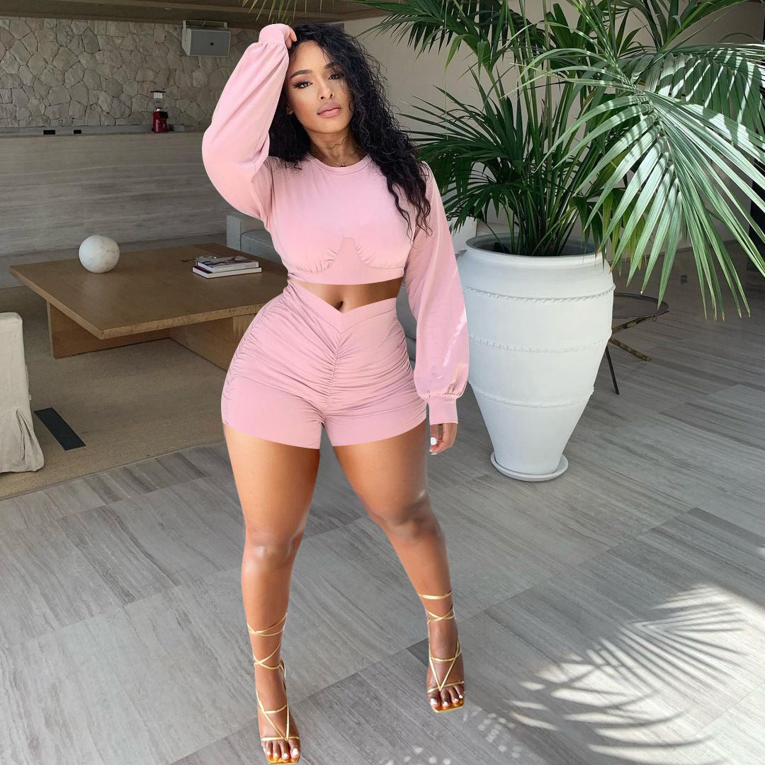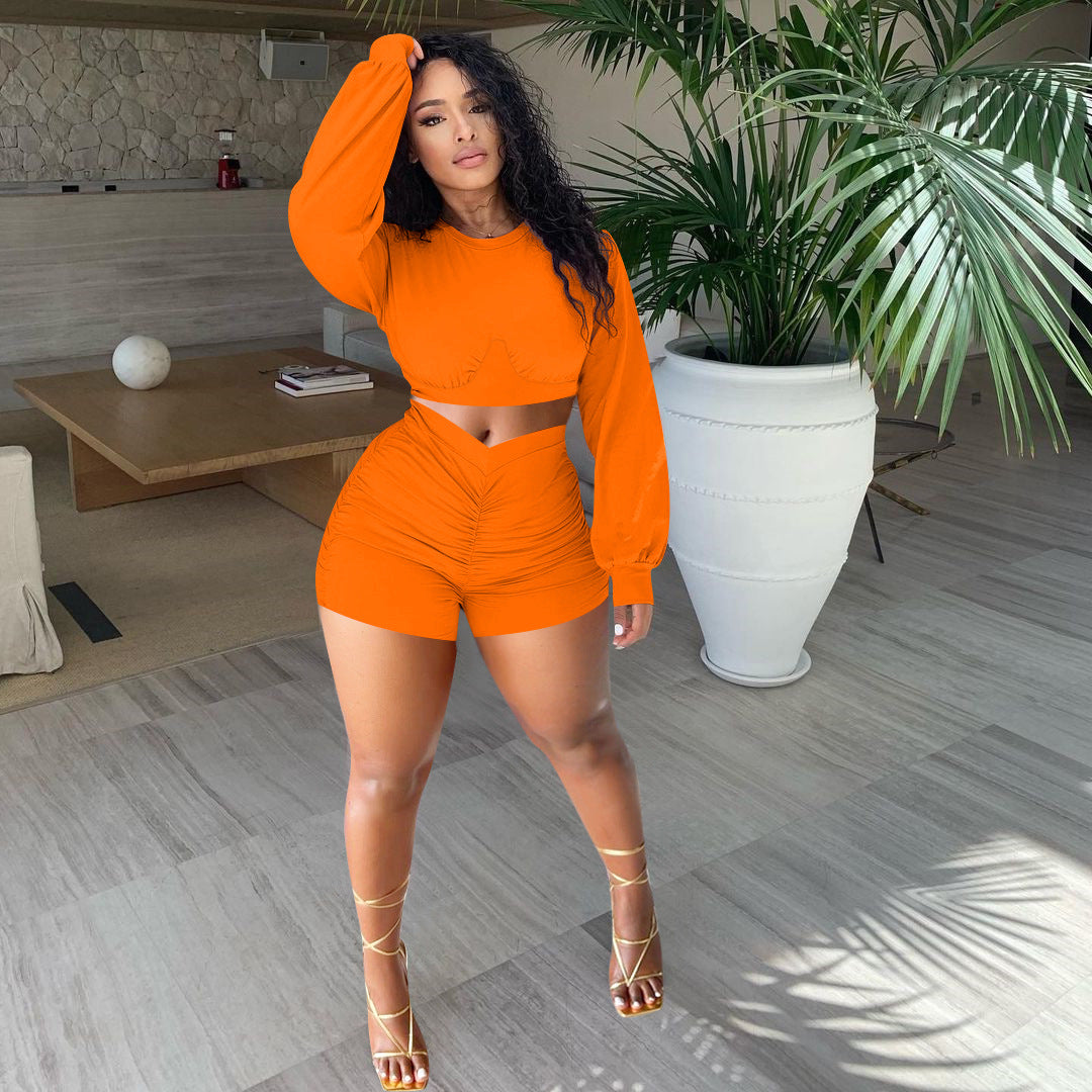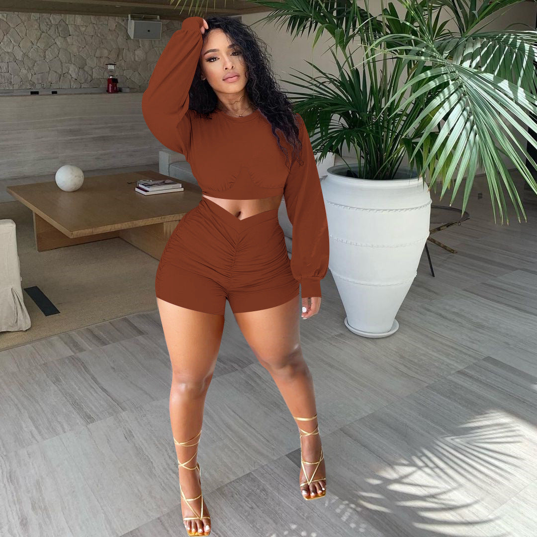 Fashion solid color pleated suit(AY1558)