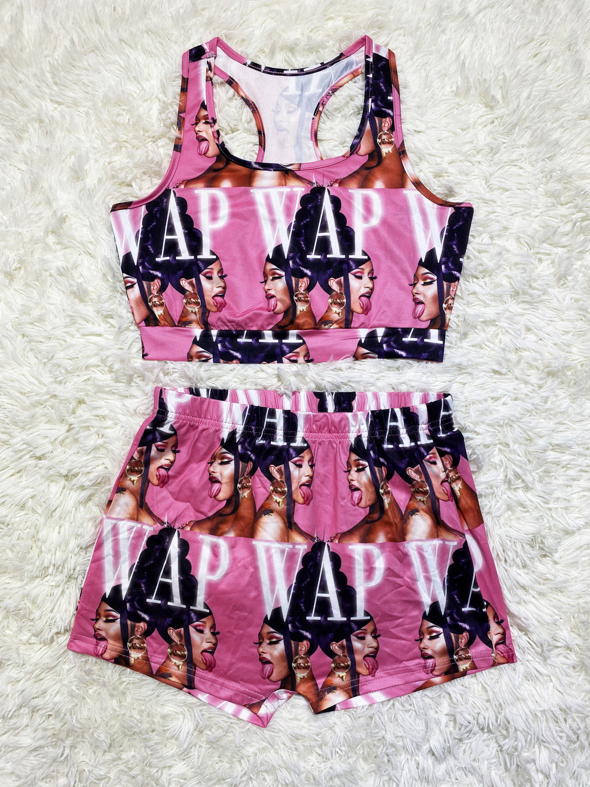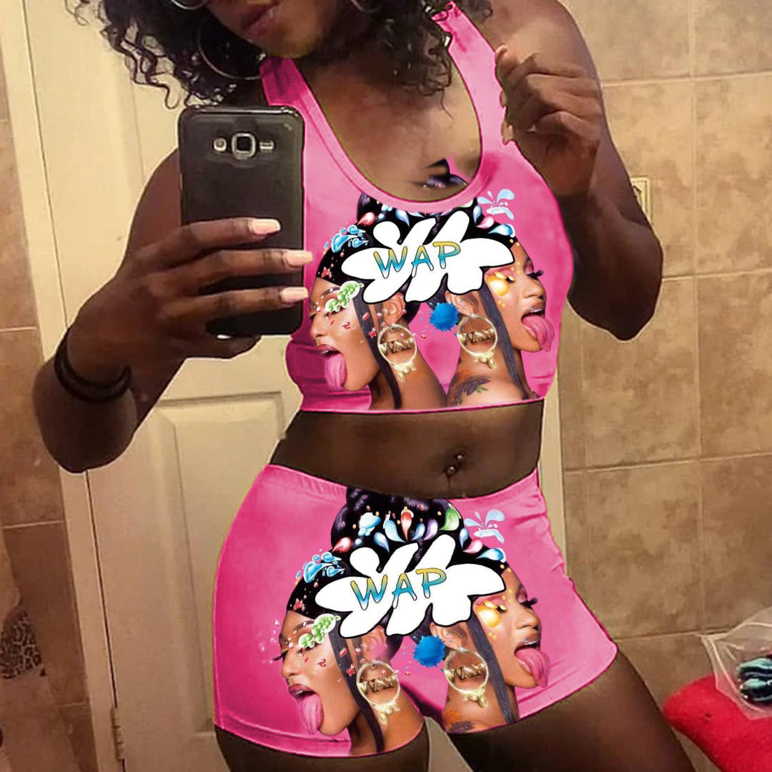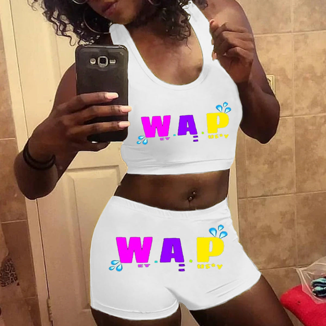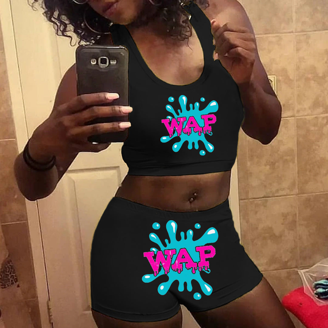 • Load image into Gallery viewer, WAP printed vest shorts suit(A11269)