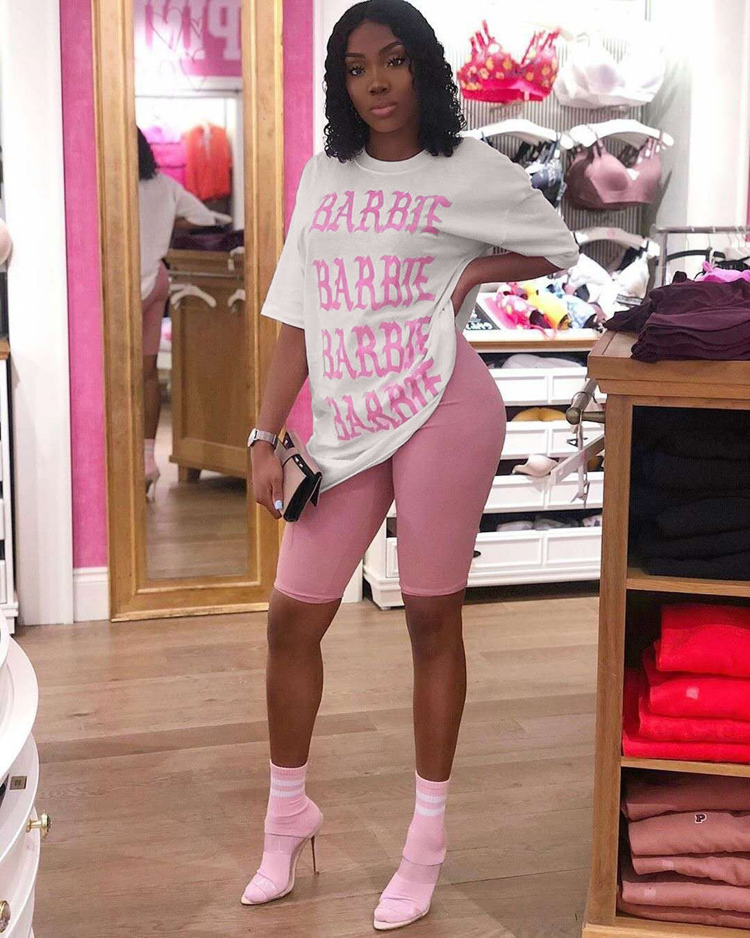 The size of the model is LARGE, the clothes have no color difference and are Stretchy.
