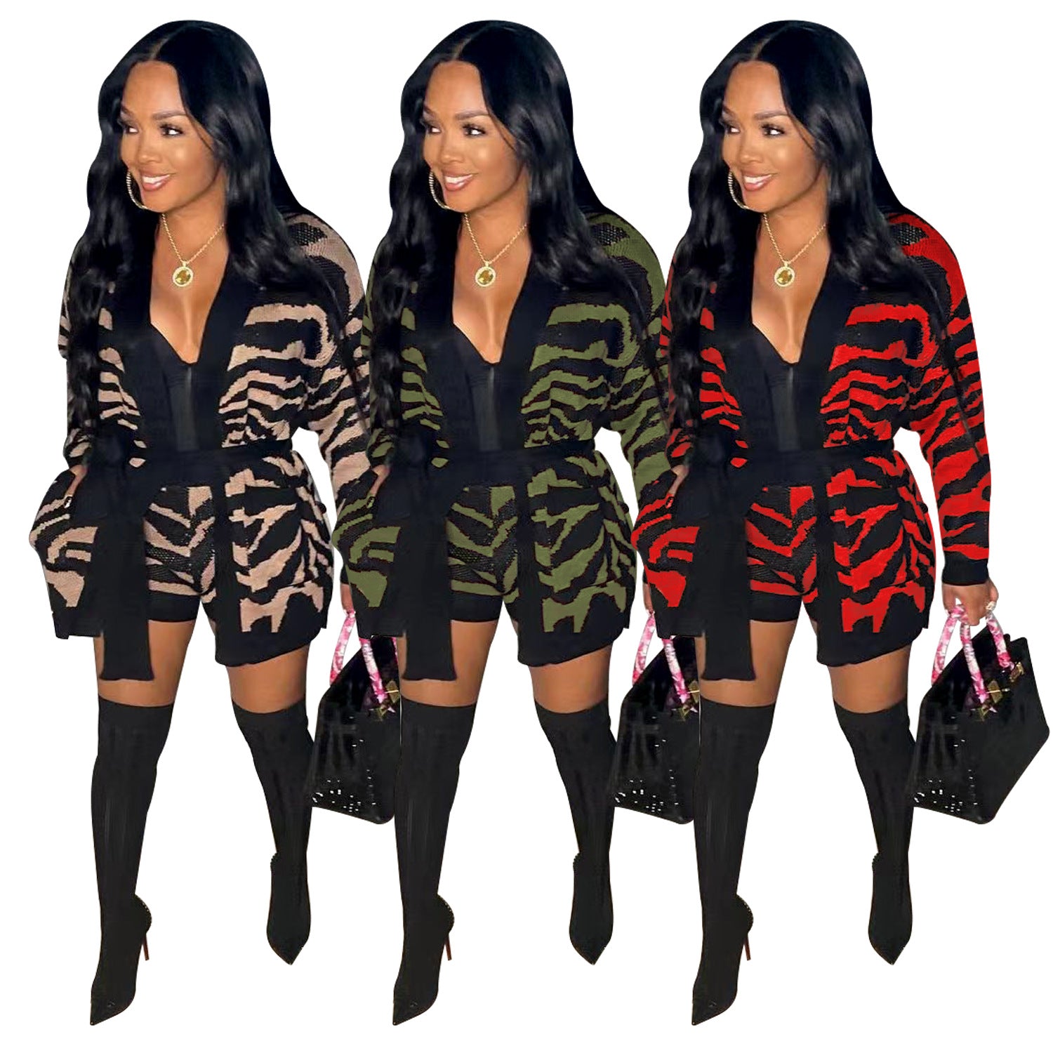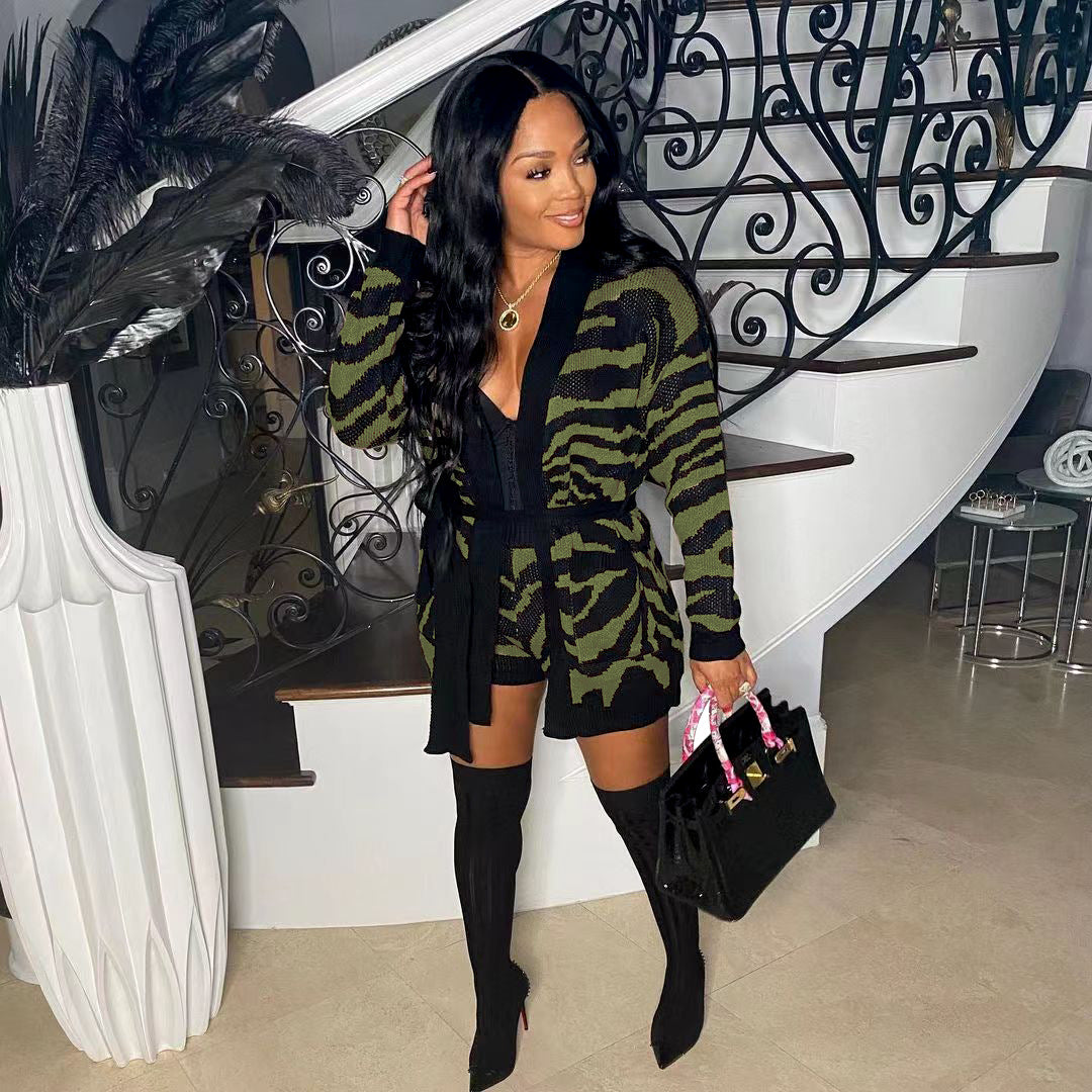 Knitted Leopard Sweater Jacket Shorts Set(AY2423)
