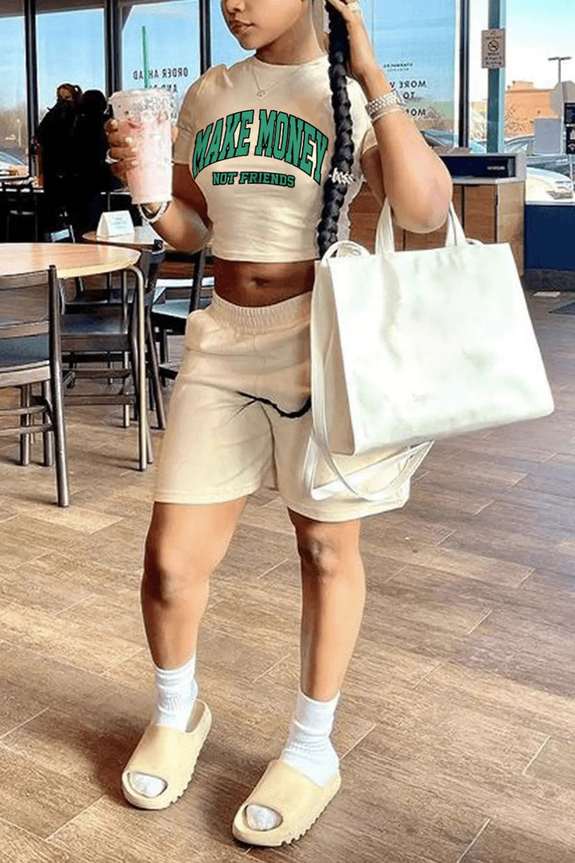 Letter Print Short Sleeve Casual Suit(AY2277)