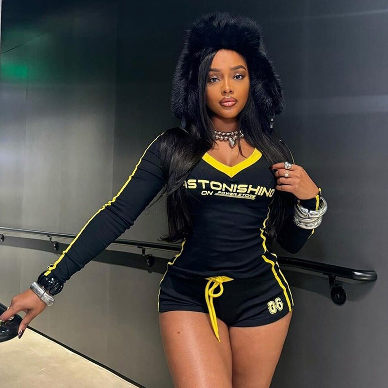 • Load image into Gallery viewer, Printed Sexy V-Neck High Waist Leggings Set