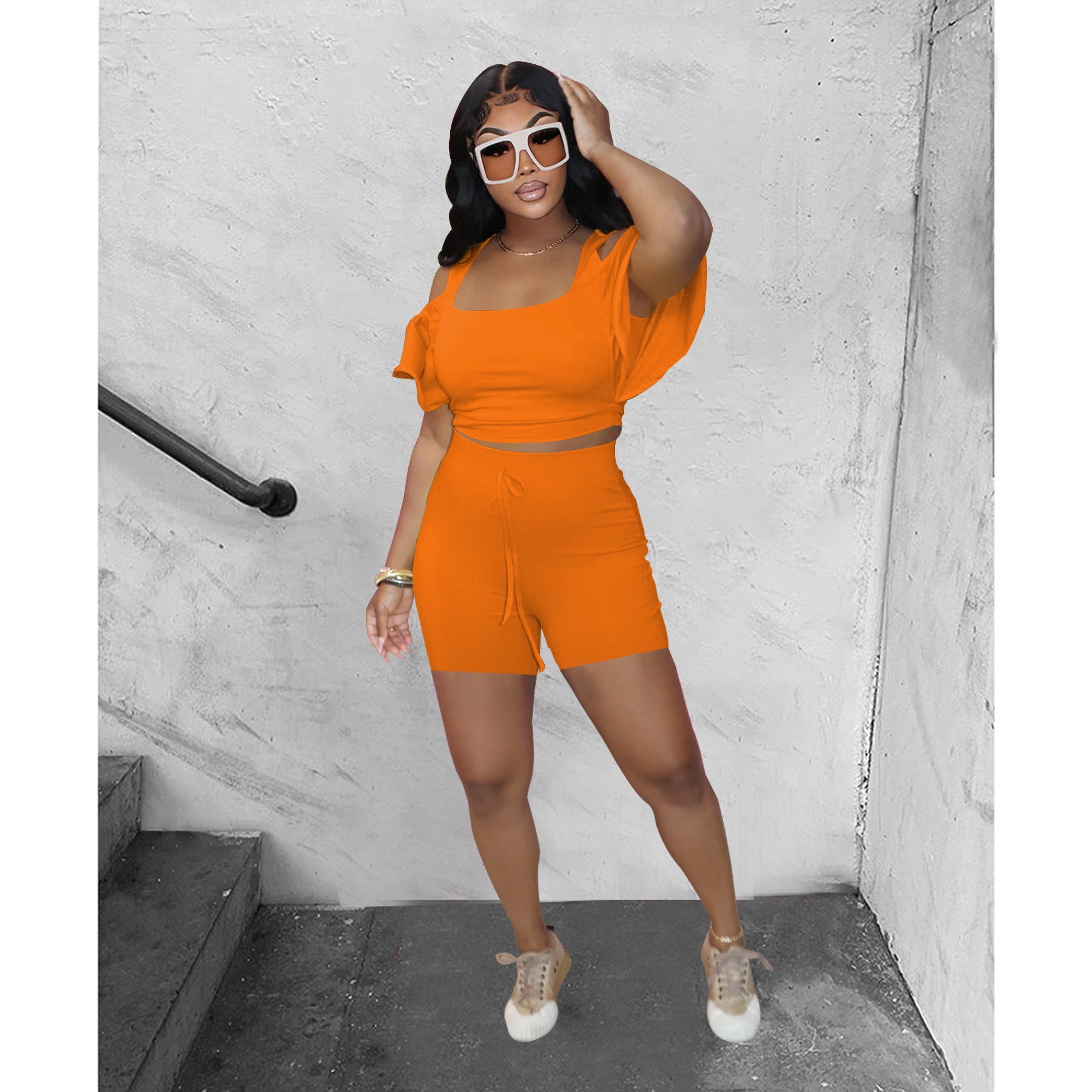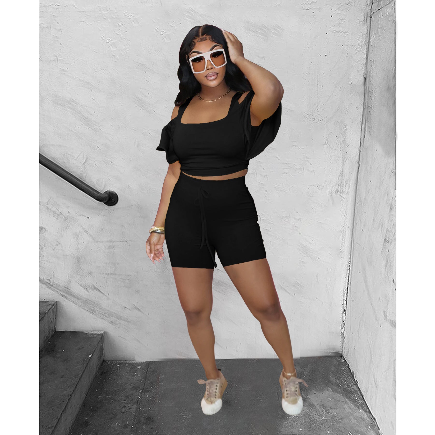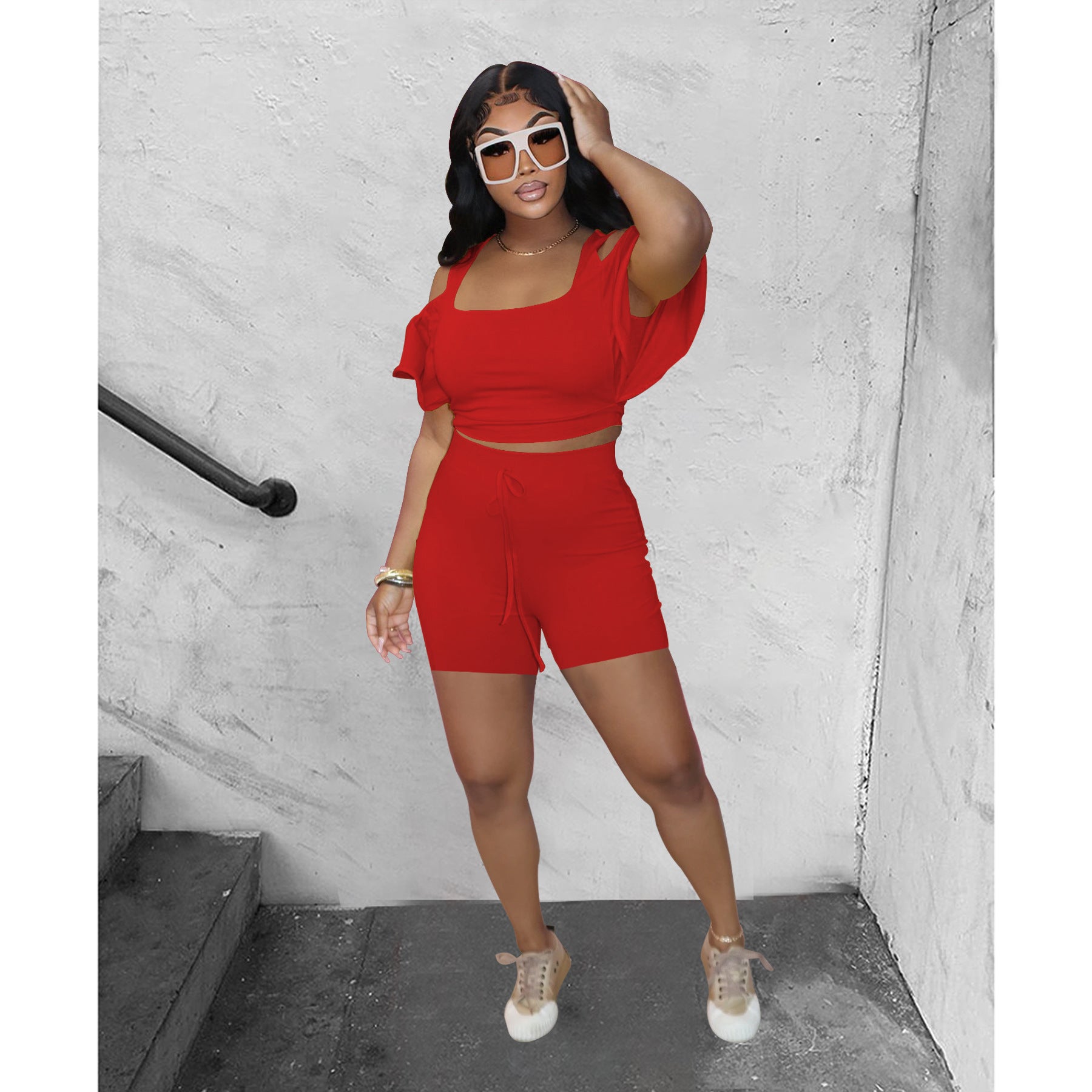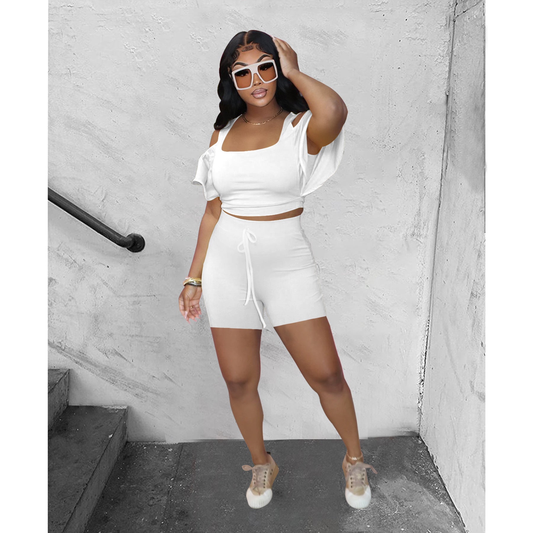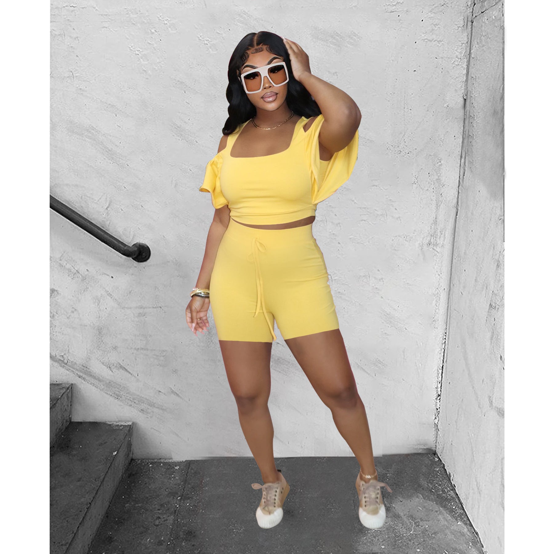 Sexy off shoulder ruffled sleeve shorts set AY2818