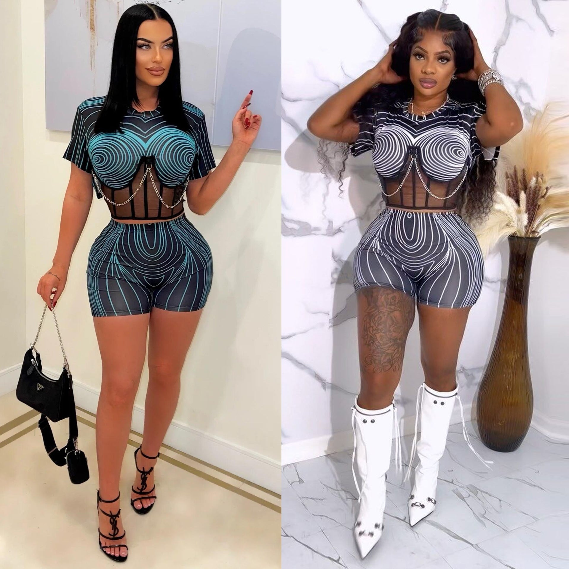 Sexy print slim fitting perspective two-piece set AY3061