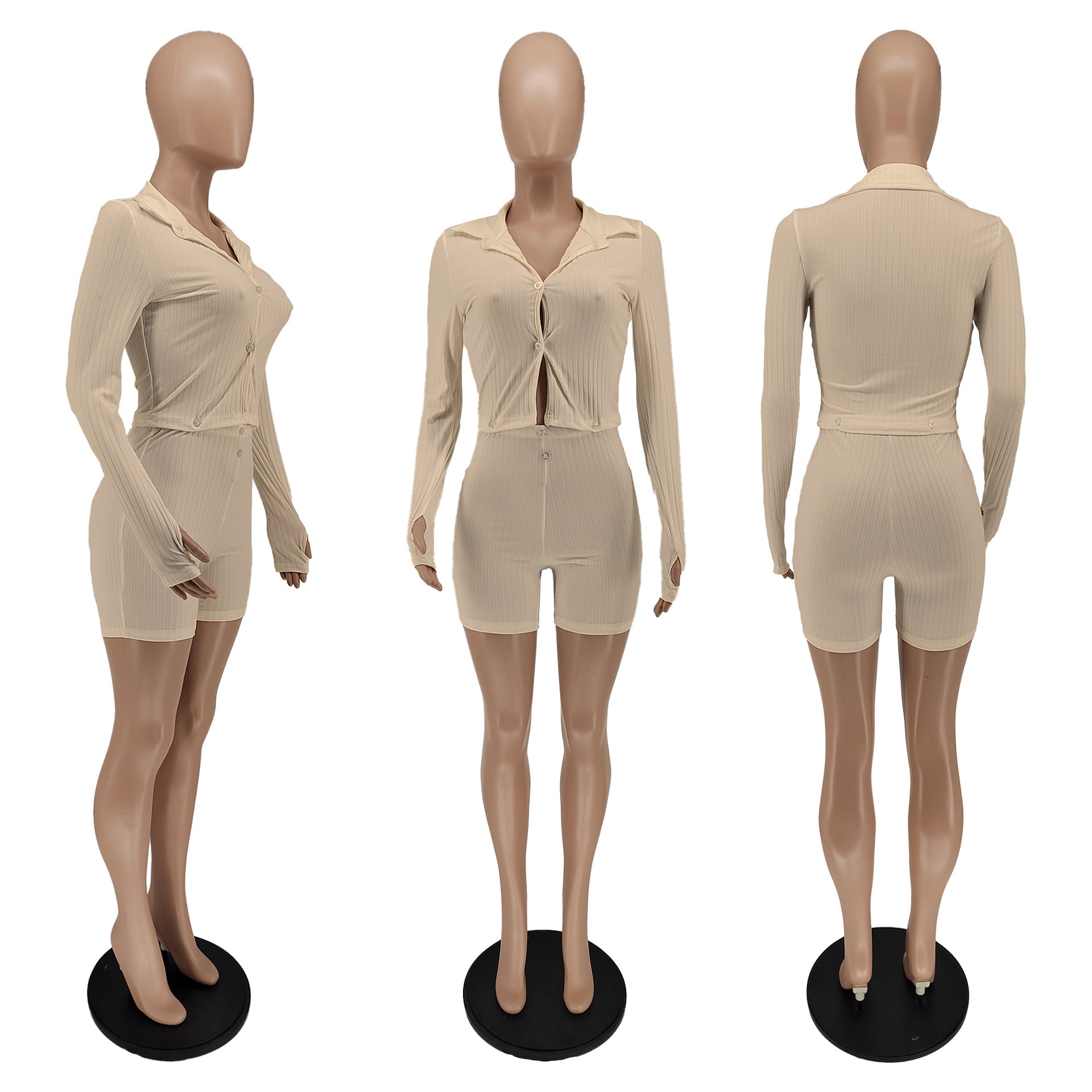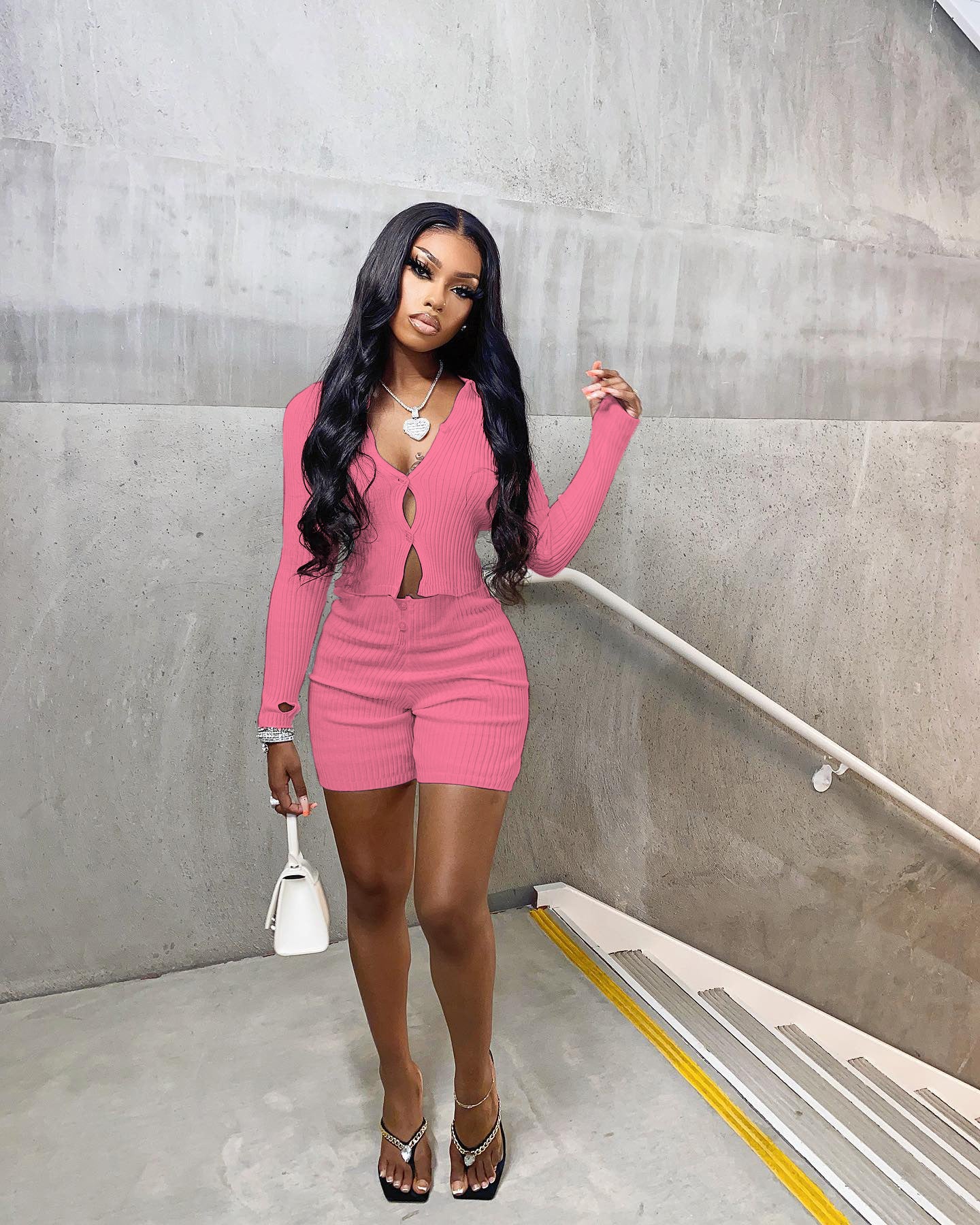 • Load image into Gallery viewer, Sexy solid color button pit strip two-piece set(AY2268)