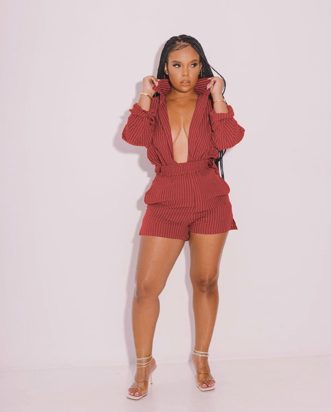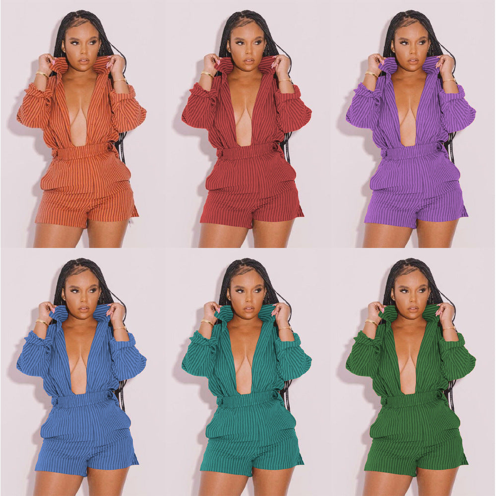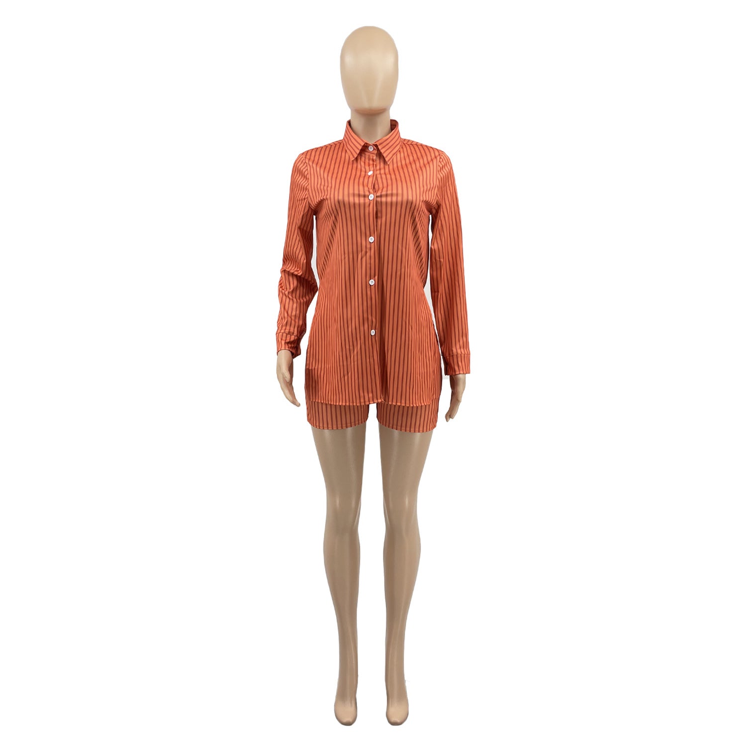 Sexy Striped Print Shirt Two Piece(AY2347)