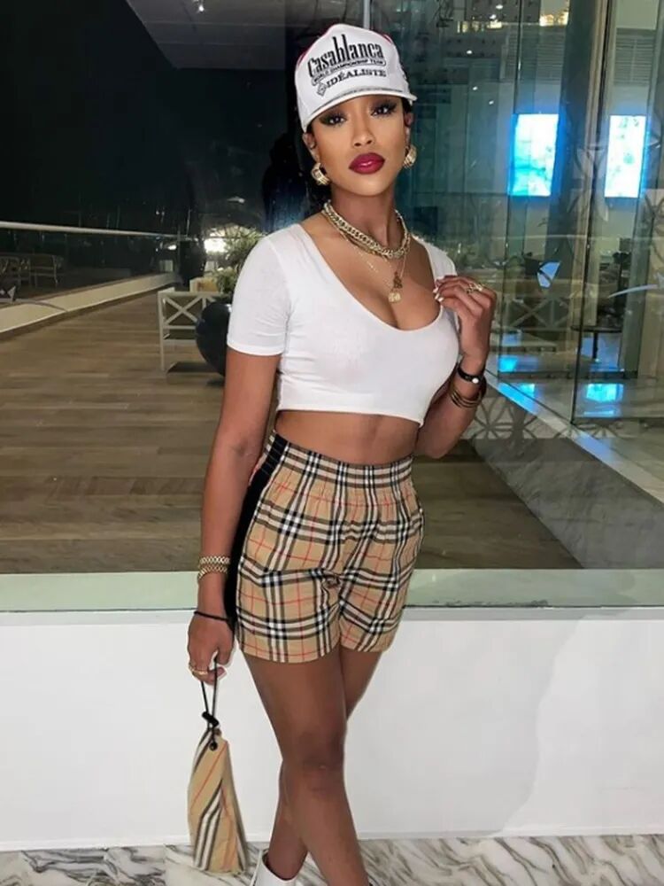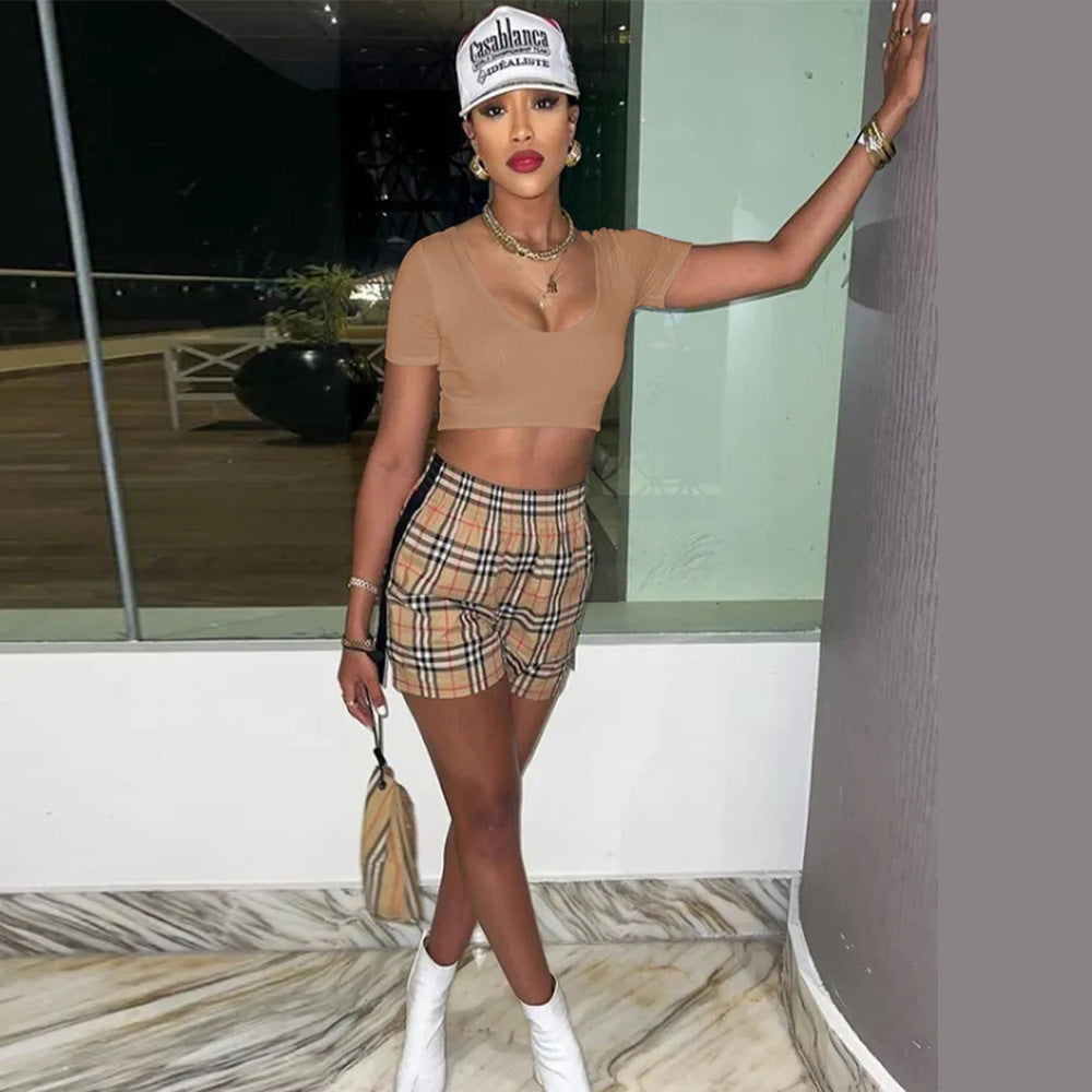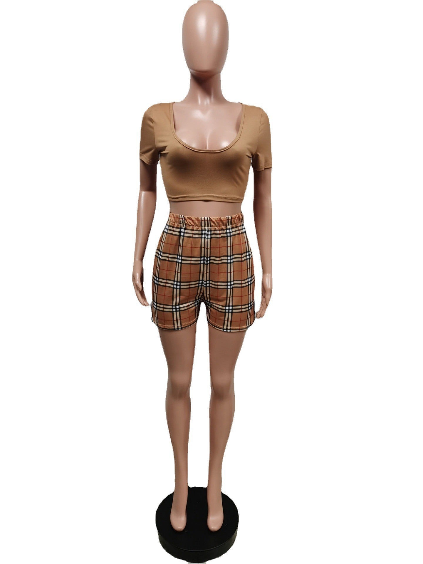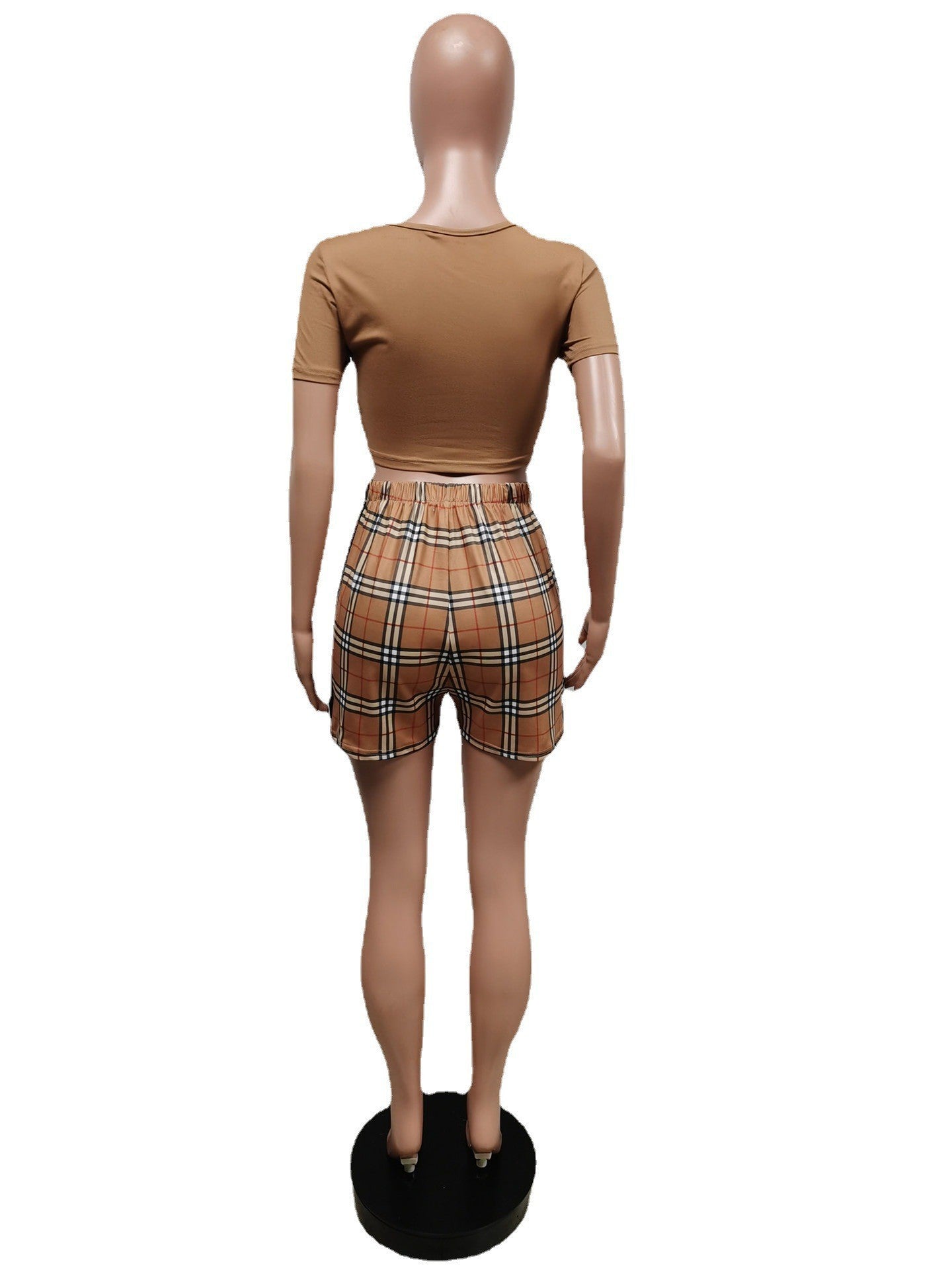 • Load image into Gallery viewer, Solid plaid print T-shirt two-piece set(AY2094)