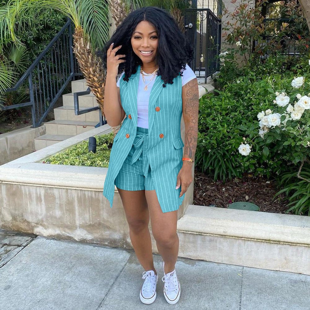 Stripe Print Blazer Vest Jacket with belt AY1991