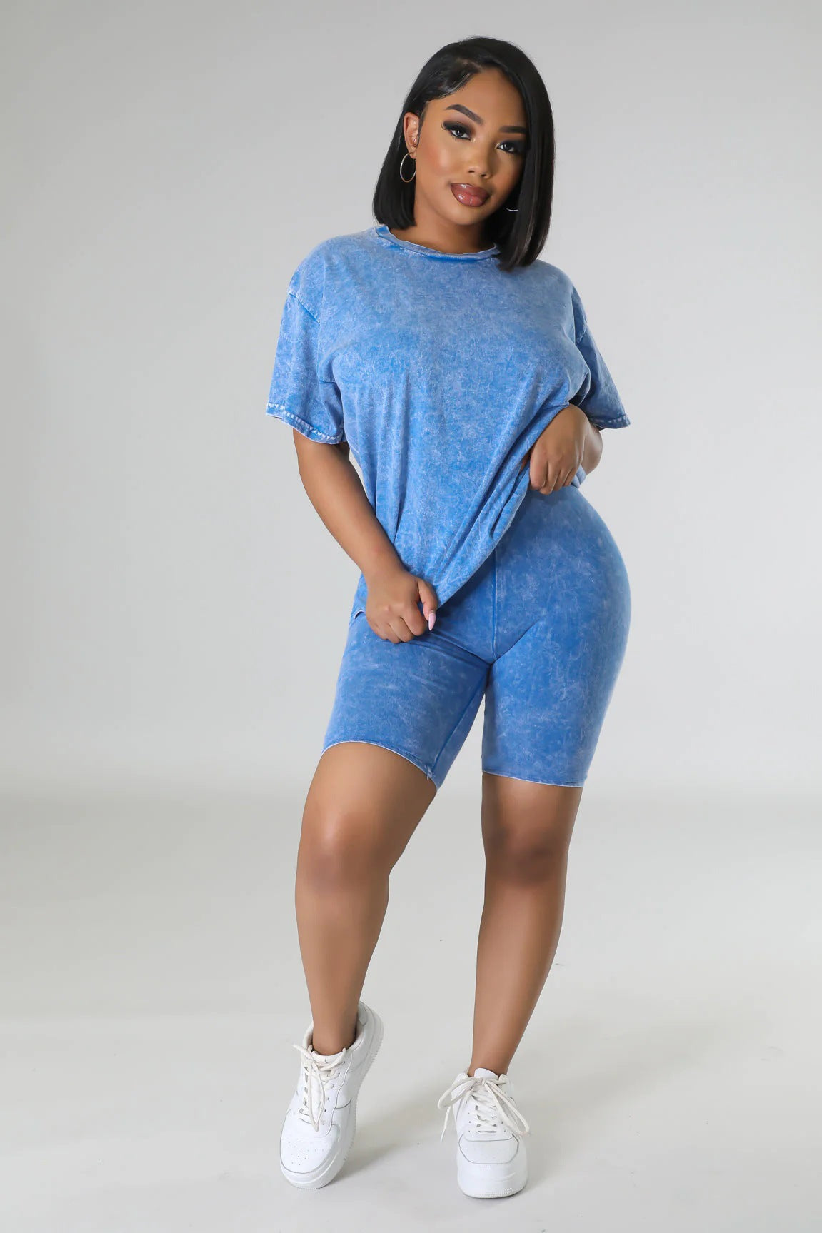 Tie dyed simple loose fitting T-shirt shorts casual sports set AY2833