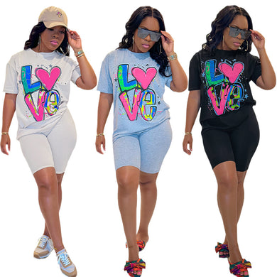 Fashion printed solid color short sleeved set AY3034