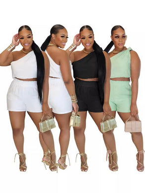 Slanted shoulder sports set sleeveless two-piece set AY3431