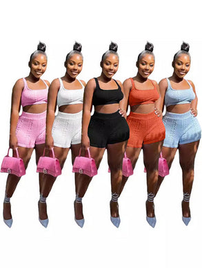 Sexy wrapped chest hot diamond elastic shorts set AY3445