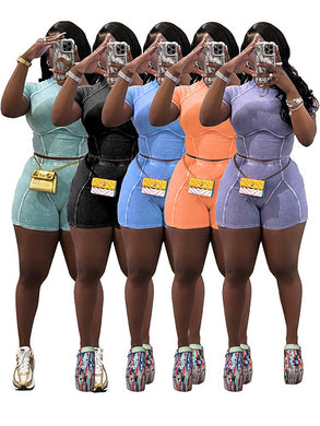 street solid color tight fitting short sleeved top and shorts casual set AY3466