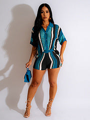 Fashion print suit short sleeve women's two-piece set AY3437