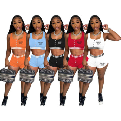 Fashion printed vest shorts set AY2978