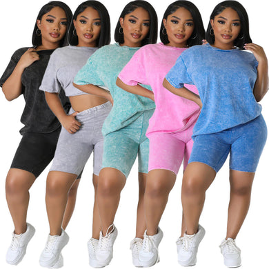 Tie dyed simple loose fitting T-shirt shorts casual sports set AY2833